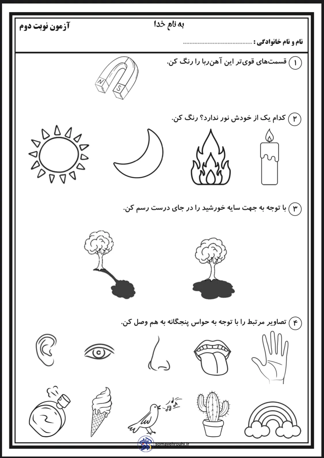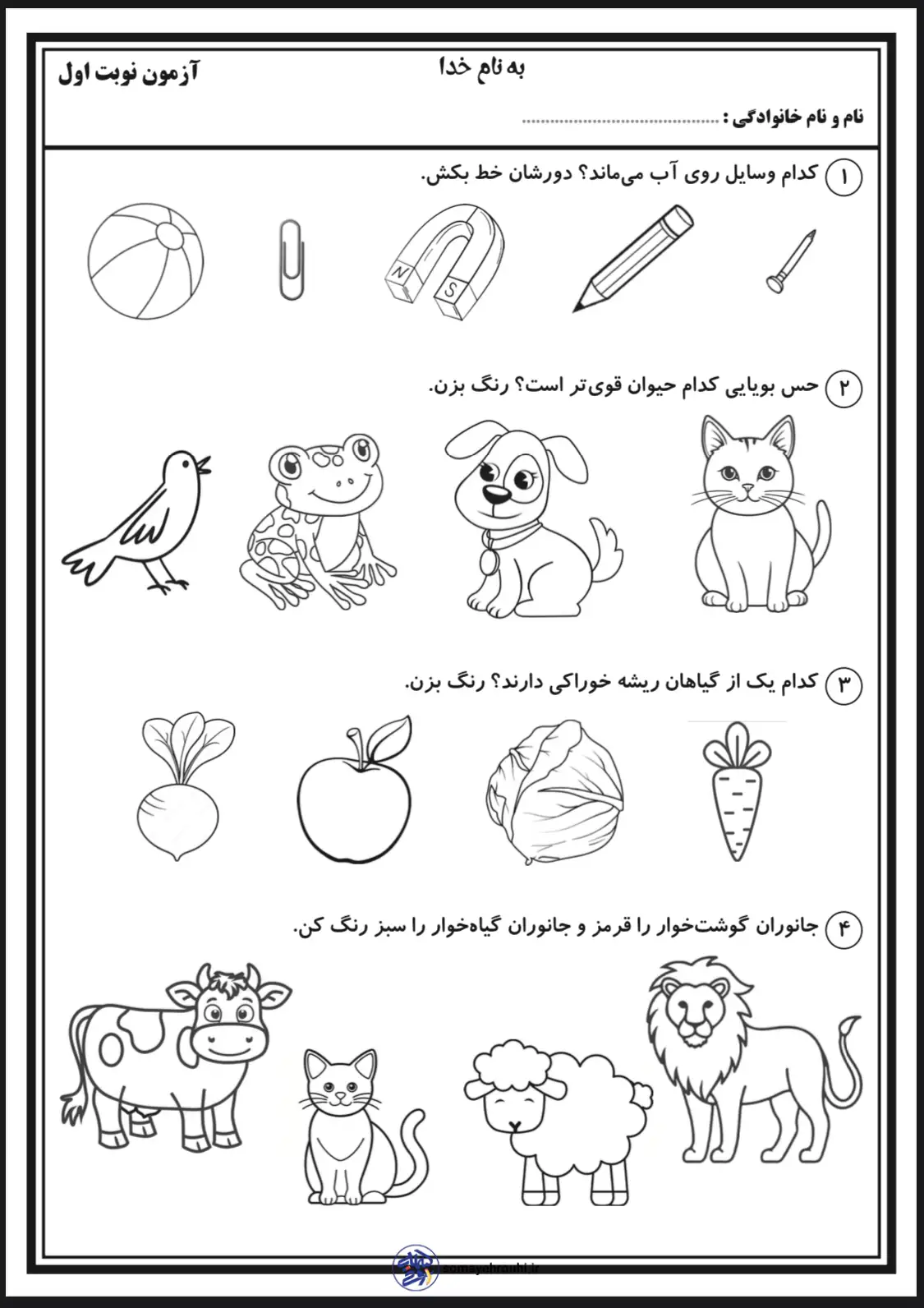 کاربرگ رنگ آمیزی فارسی اول دبستان