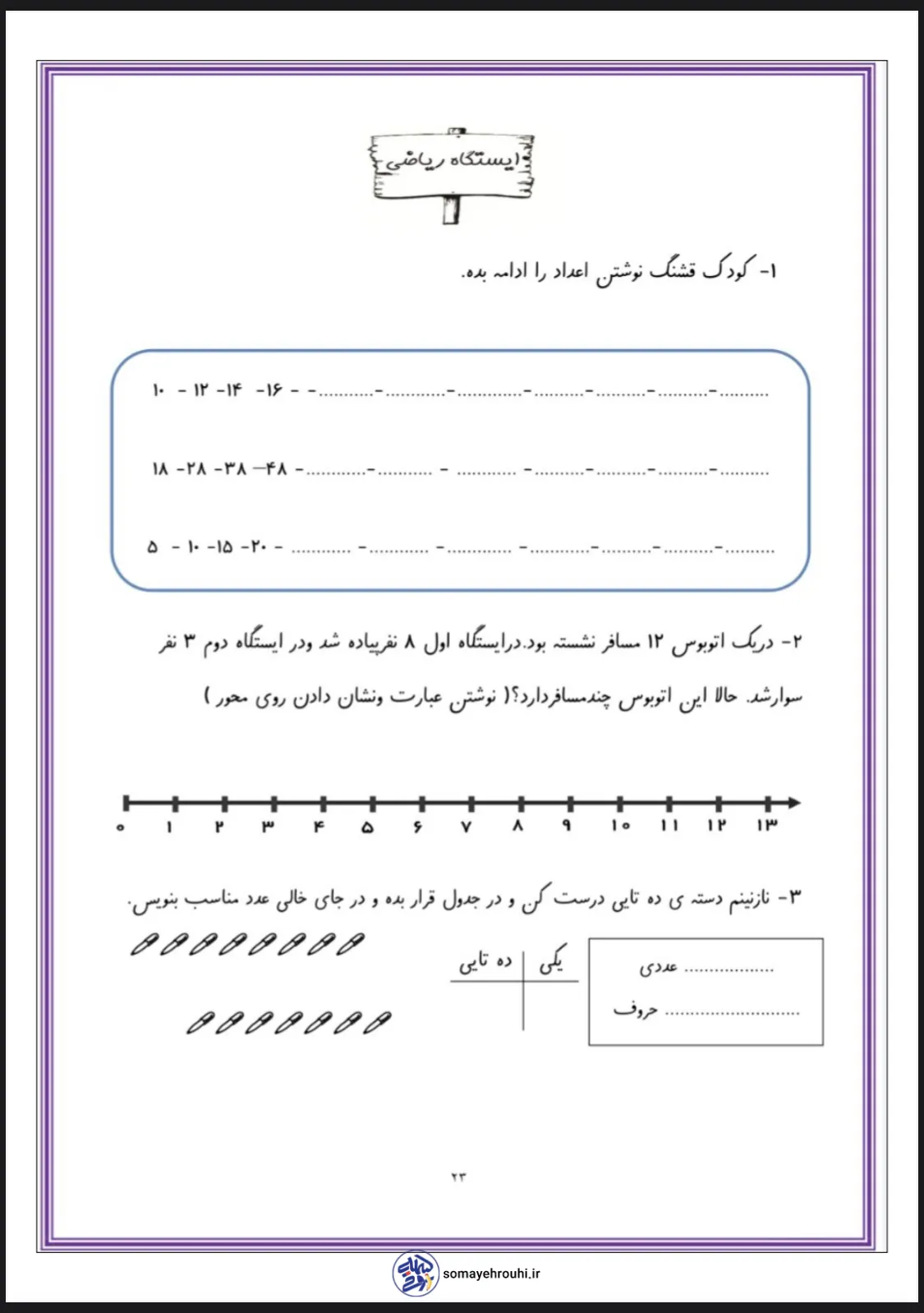 مشاهده بزرگ کاربرگ آزمونکاربرگ های پایه دومکاربرگ های ریاضی پایه دوم کاربرگ های مرور فصل یک ریاضی دوم دبستان