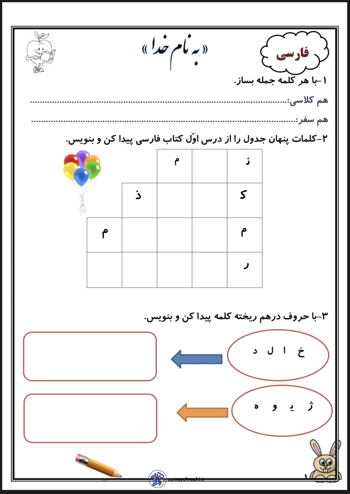 مشاهده بزرگ کاربرگ های پایه دومکاربرگ های ریاضی پایه دومکاربرگ های علوم پایه دومکاربرگ های فارسی پایه دوم پیک آدینه دروس پایه دوم ابتدایی