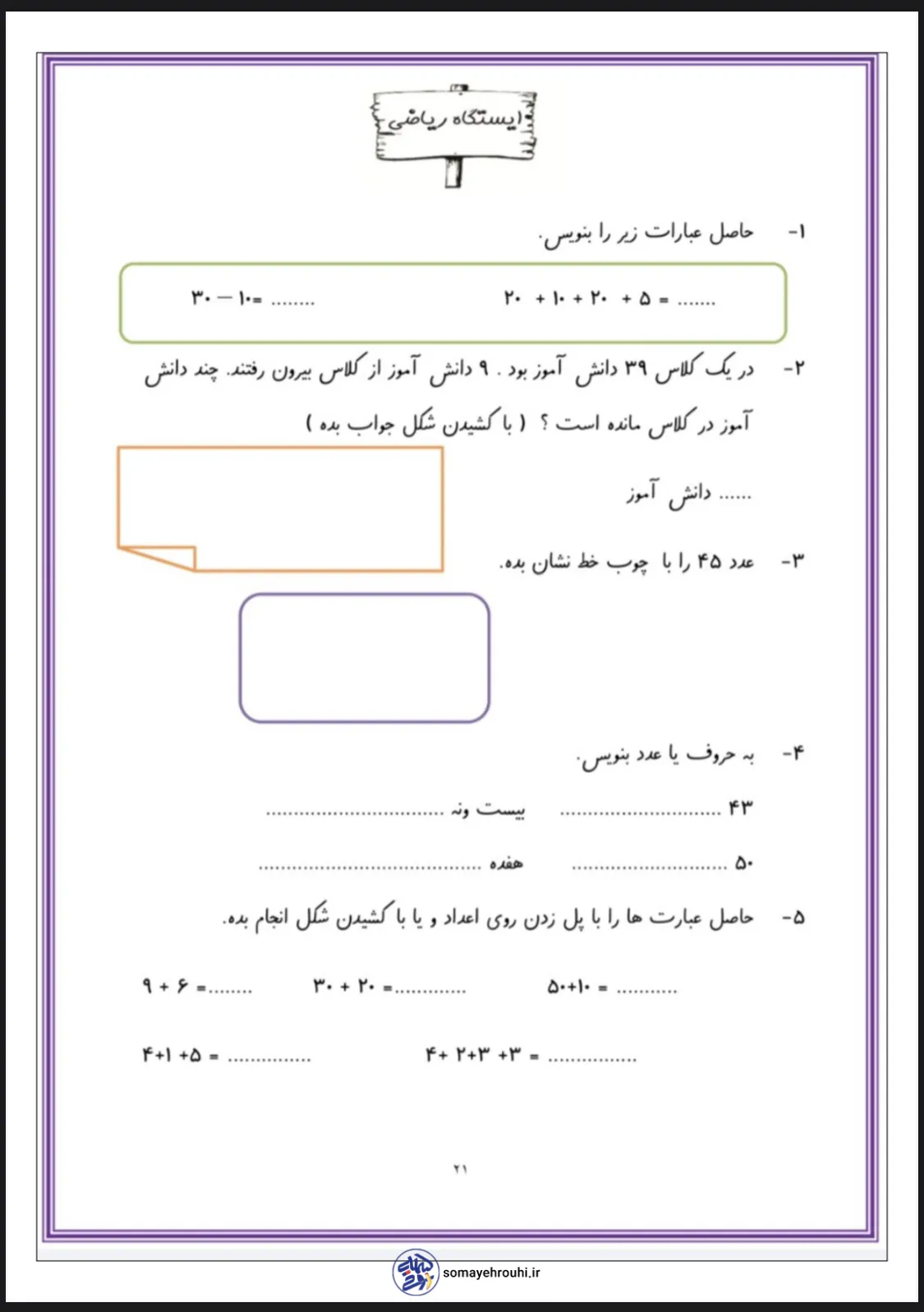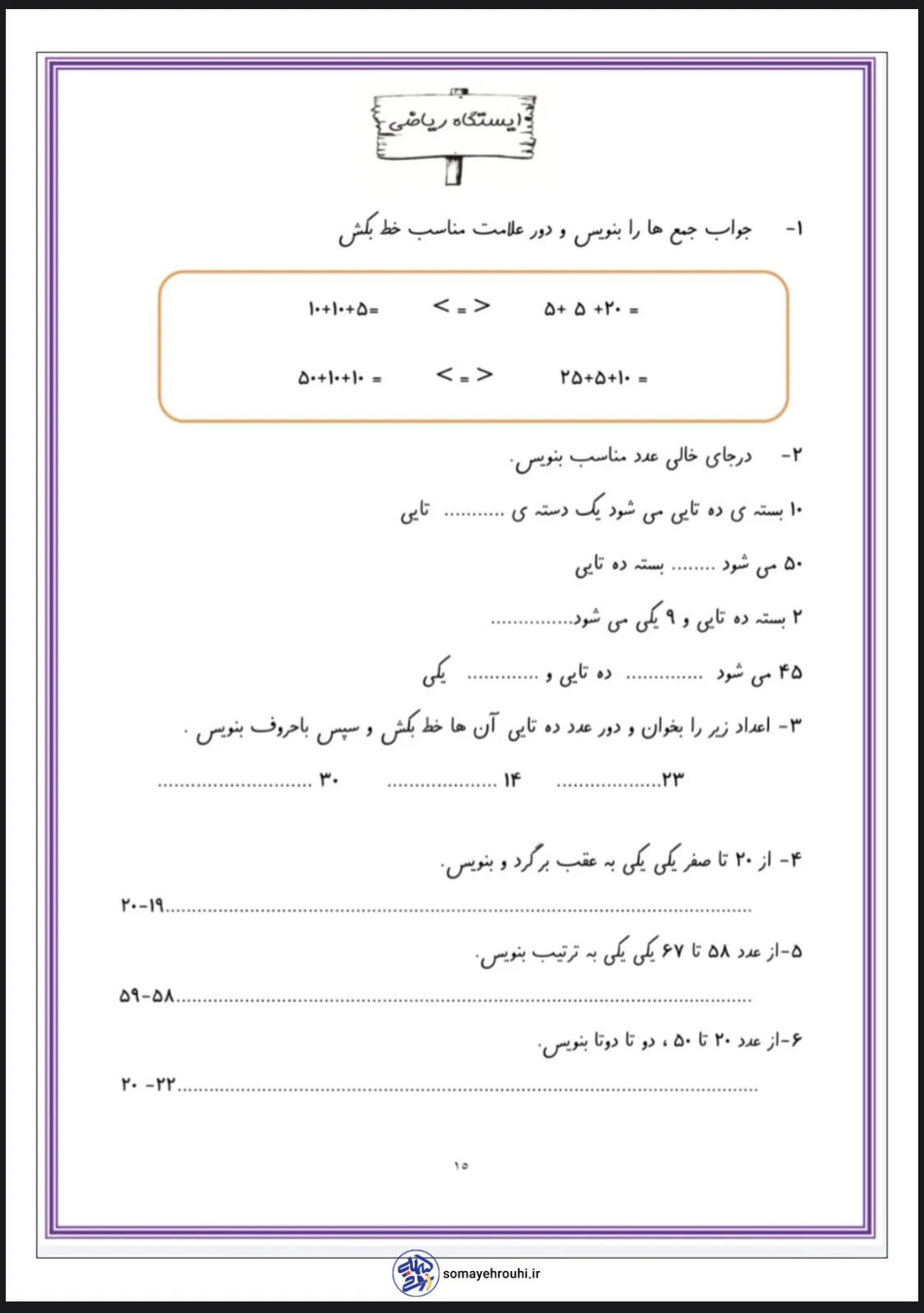 مشاهده بزرگ کاربرگ آزمونکاربرگ های پایه دومکاربرگ های ریاضی پایه دوم کاربرگ ریاضی حروف و عدد نویسی دوم دبستان