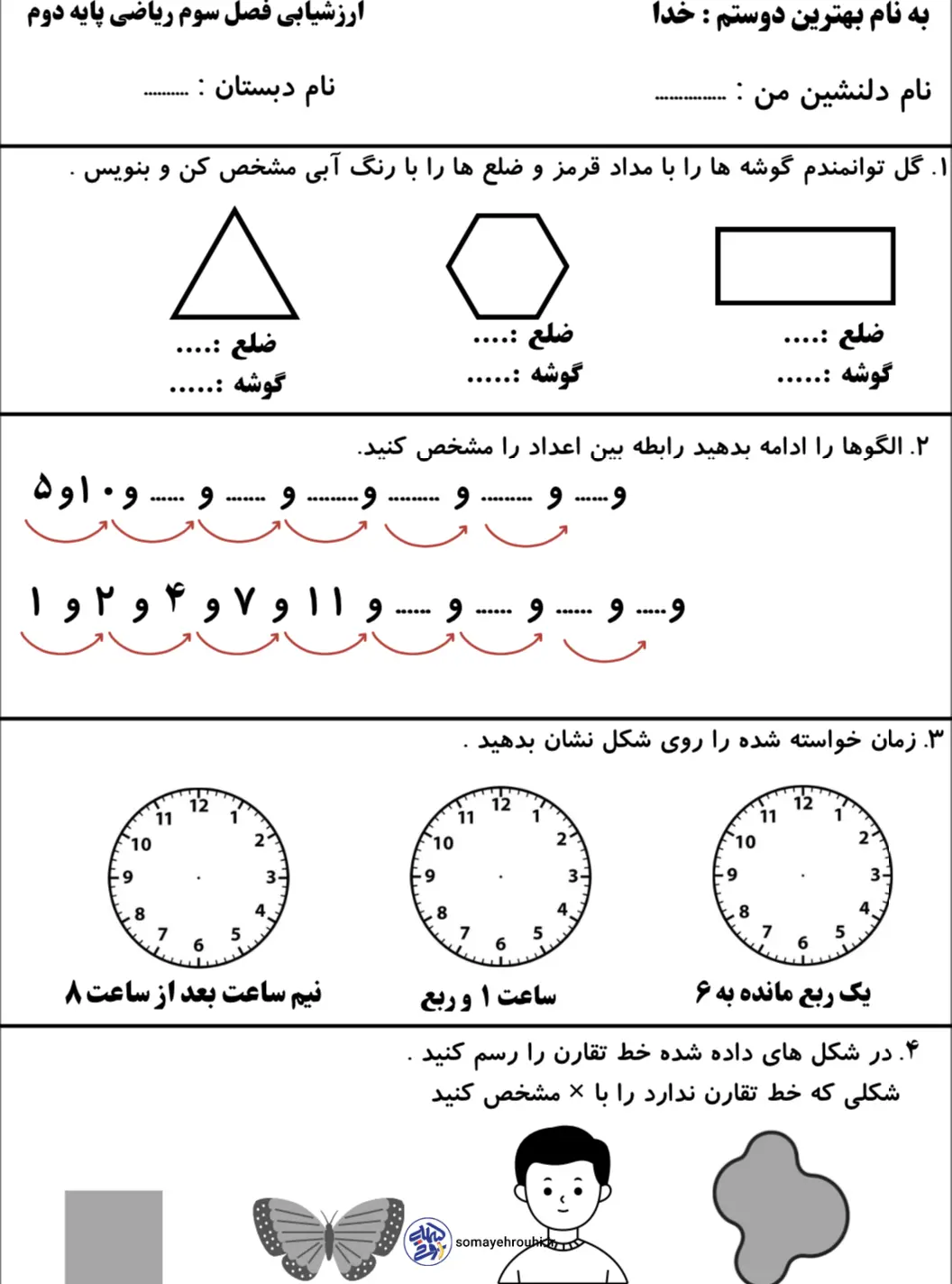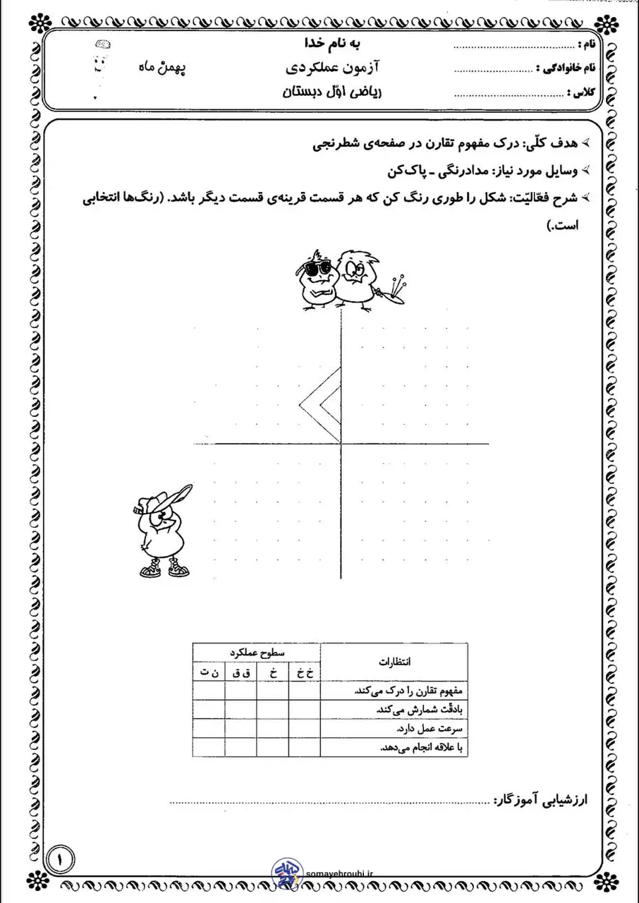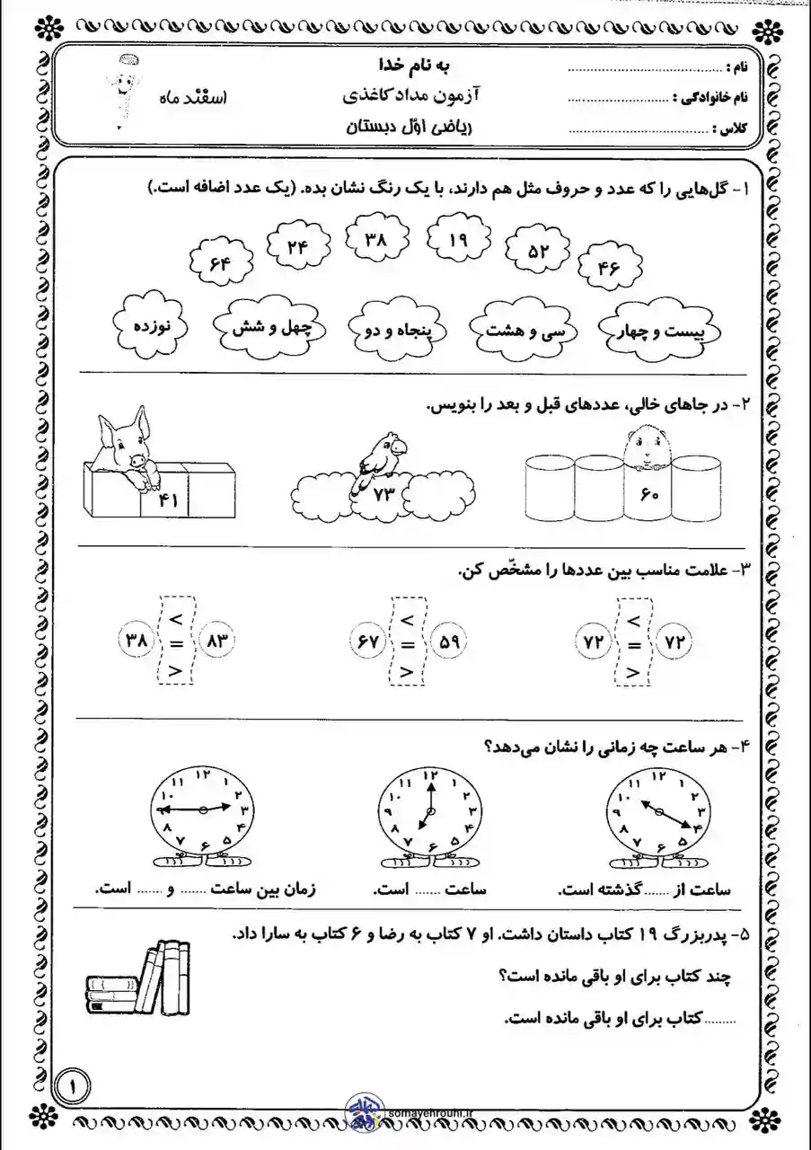 مشاهده بزرگ پایه اولریاضیکاربرگ آزمونکاربرگ های ریاضی پایه اول دانلود کاربرگ رایگان آزمون ریاضی فروردین ماه اول ابتدایی