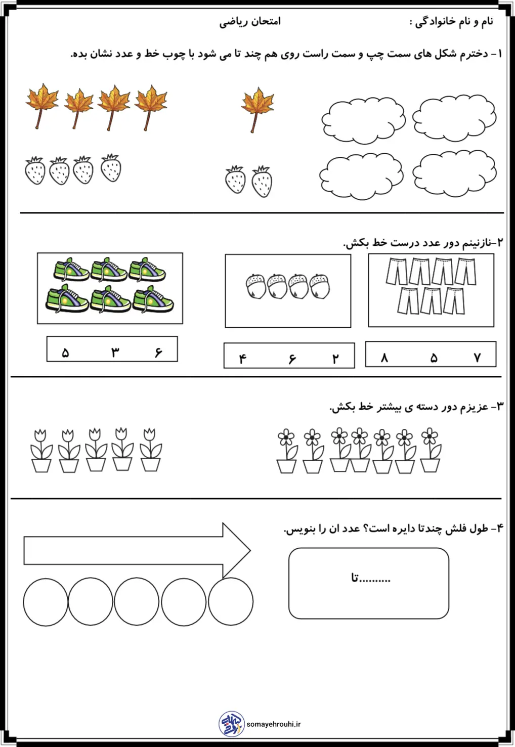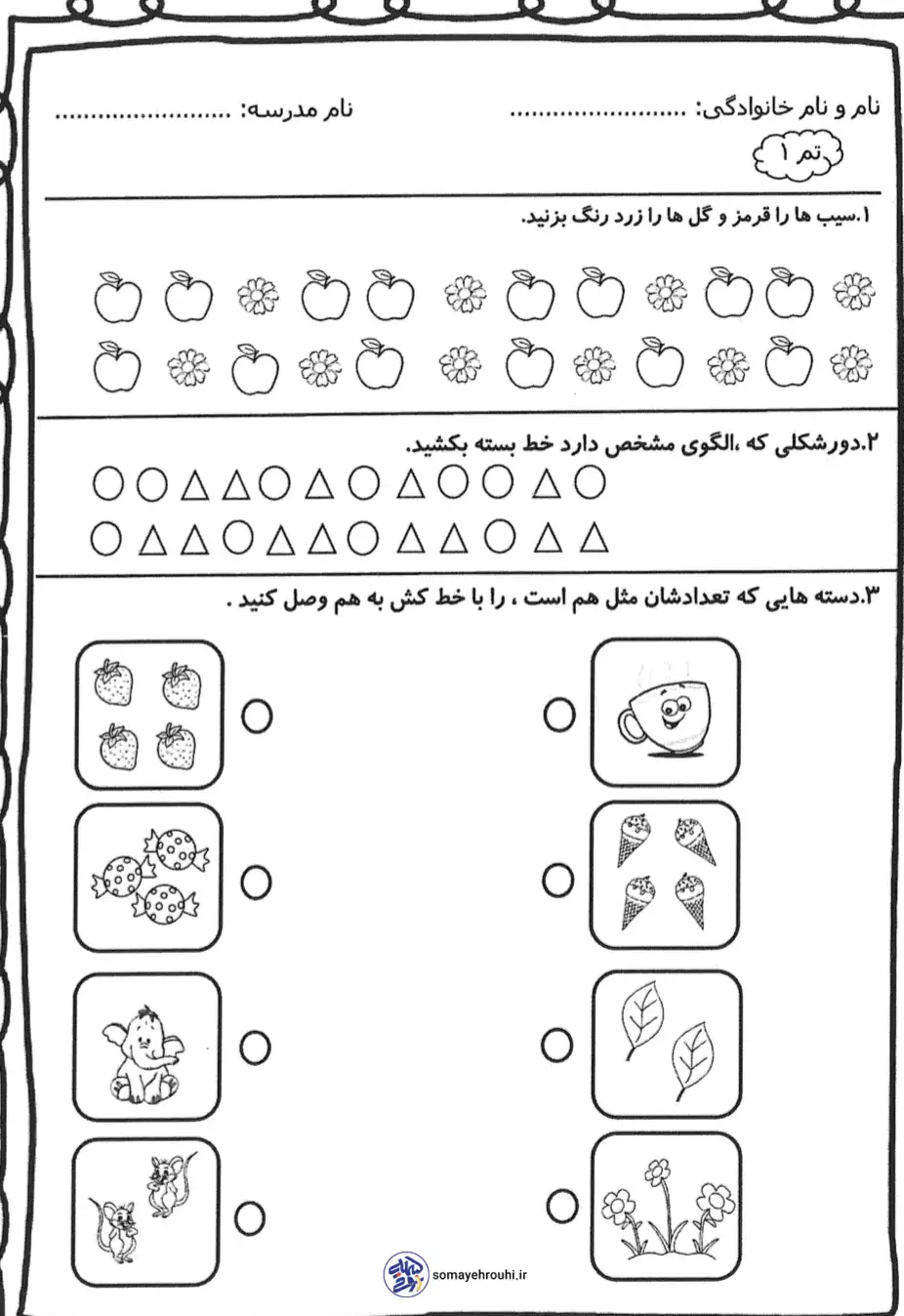 مشاهده بزرگ آموزش اعدادپایه اولکاربرگ آزمونکاربرگ های ریاضی پایه اول آزمون تم ۱ تا ۱۱ ریاضی اول ابتدایی