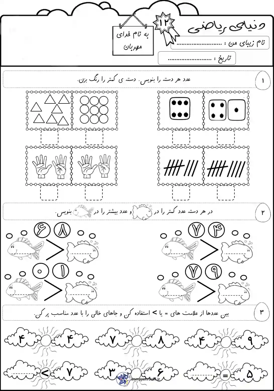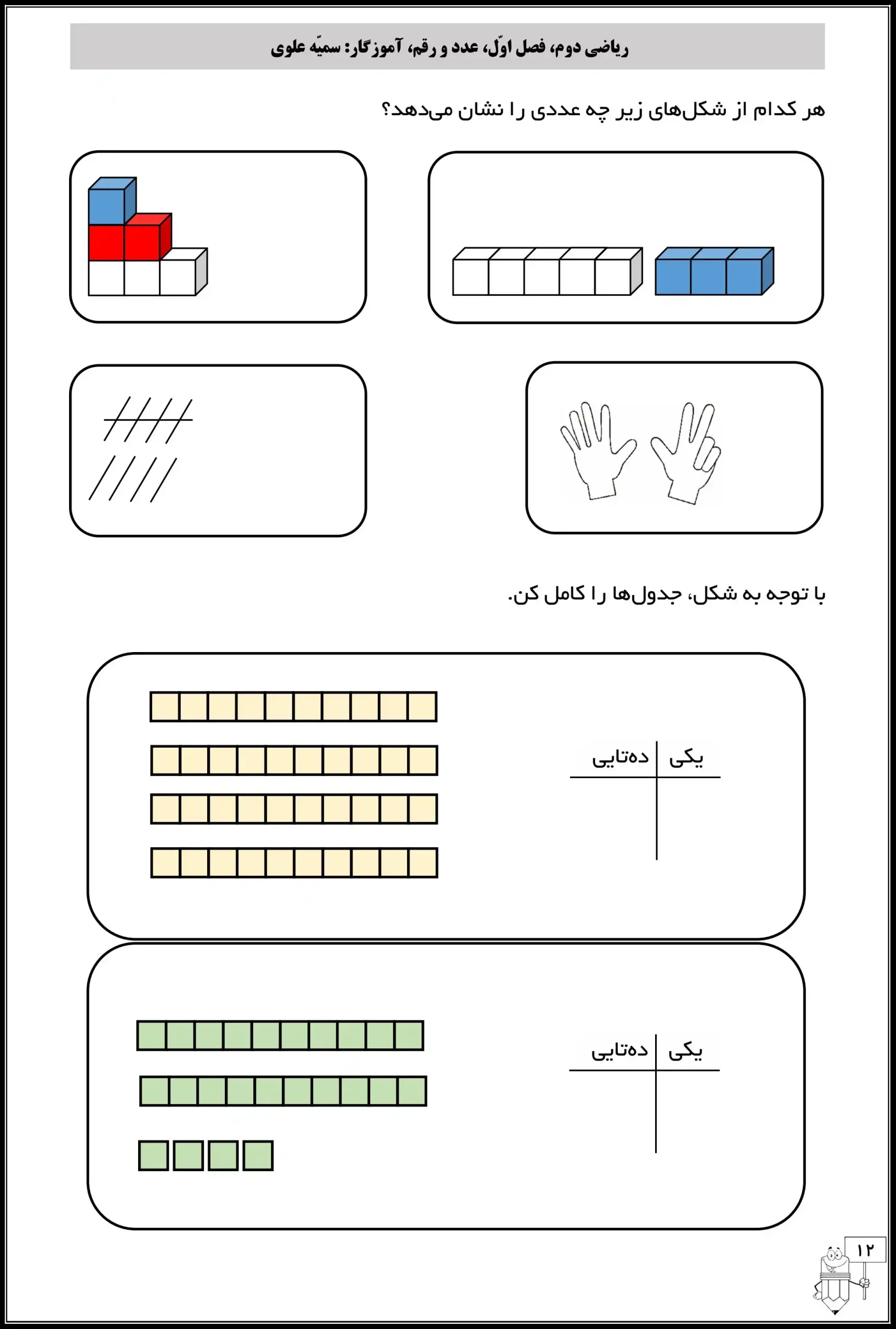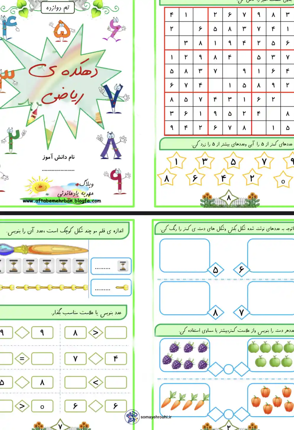 مشاهده بزرگ آموزش اعدادپایه اولعلومکاربرگ های ریاضی پایه اول کاربرگ ریاضی تم ۱۲ و علوم کلاس اول دبستان