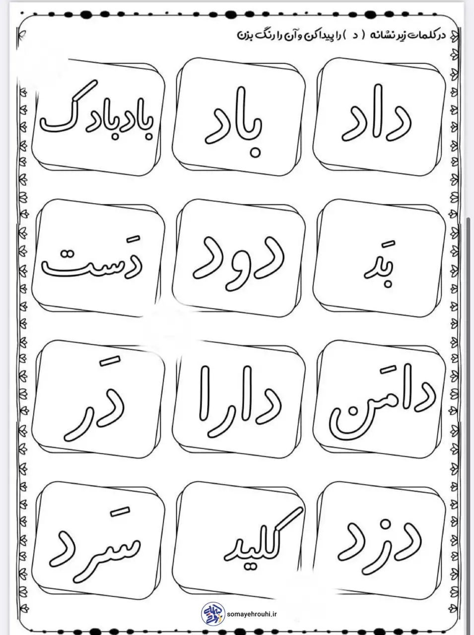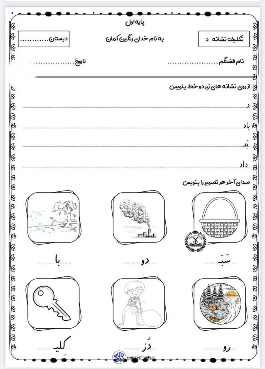 مشاهده بزرگ آموزش حروف الفباپایه اولکاربرگ های فارسی پایه اول کاربرگ رایگان تمرین حروف (د) پایه اول دبستان