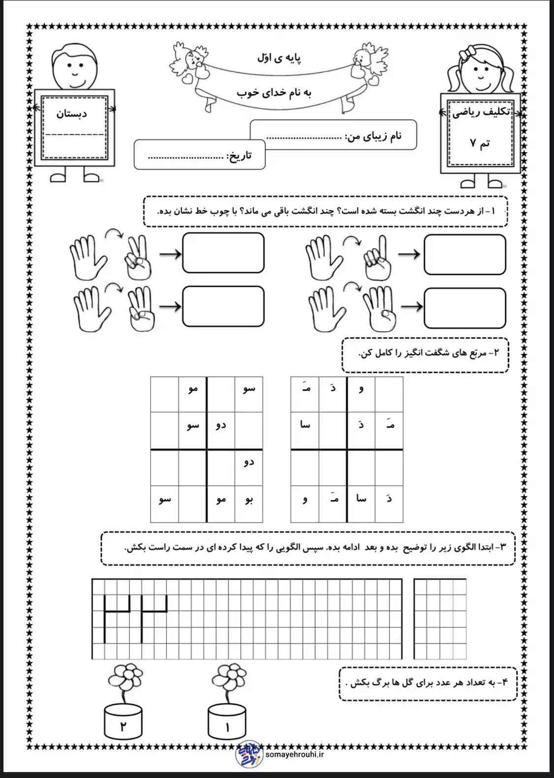 مشاهده بزرگ آموزش حروف الفباپایه اولکاربرگ های فارسی پایه اول مجموعه کاربرگ های آموزش نشانه (م) اول دبستان