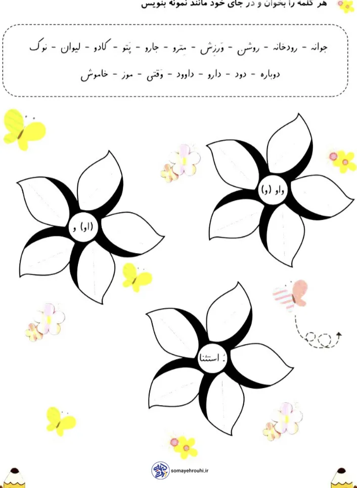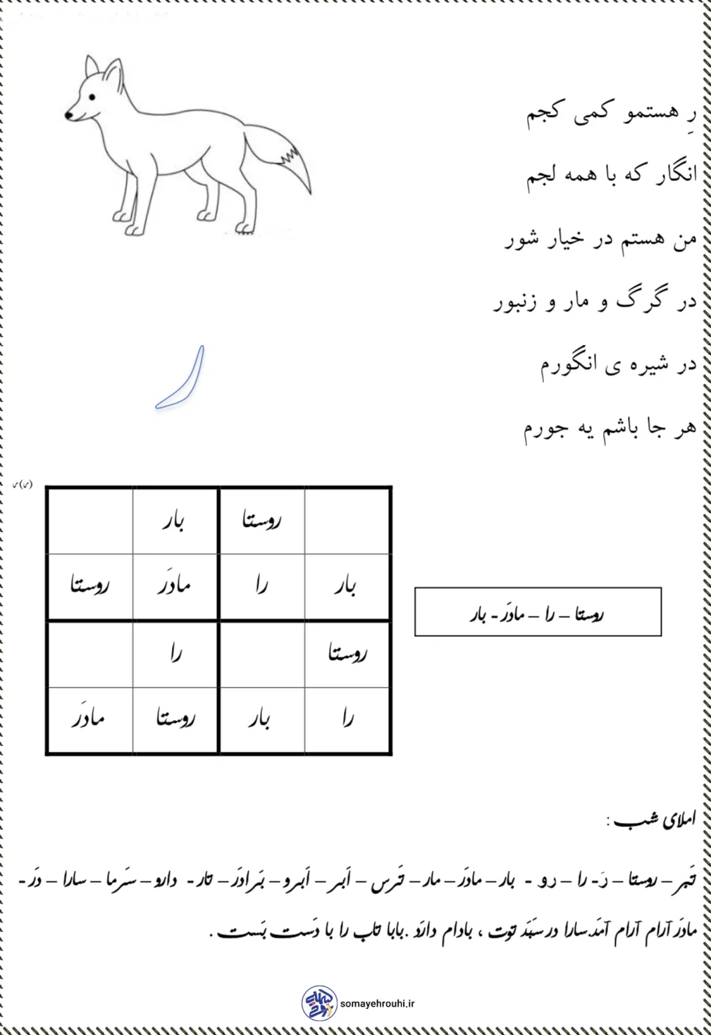 مشاهده بزرگ آموزش حروف الفباپایه اولکاربرگ های فارسی پایه اول کاربرگ شعر و املا نشانه ( ایـ یـ ی ای) کلاس اول