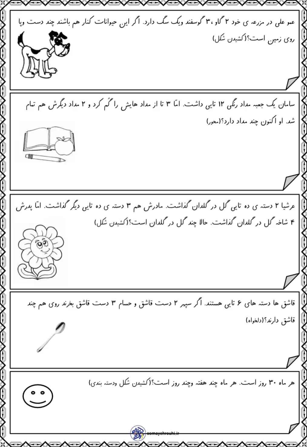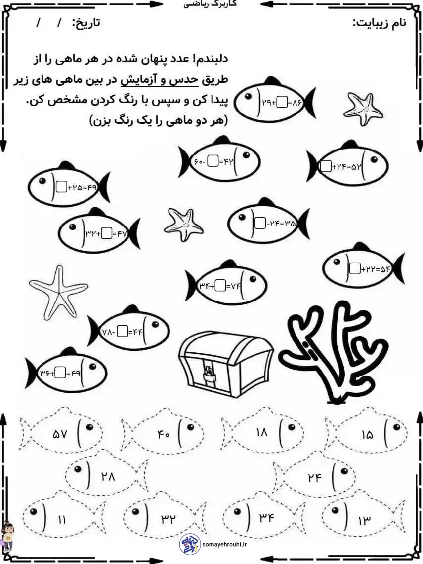 مشاهده بزرگ کاربرگ های پایه دومکاربرگ های ریاضی پایه دوم کاربرگ فصل شش ریاضی دوم جمع و تفریق فرآیندی