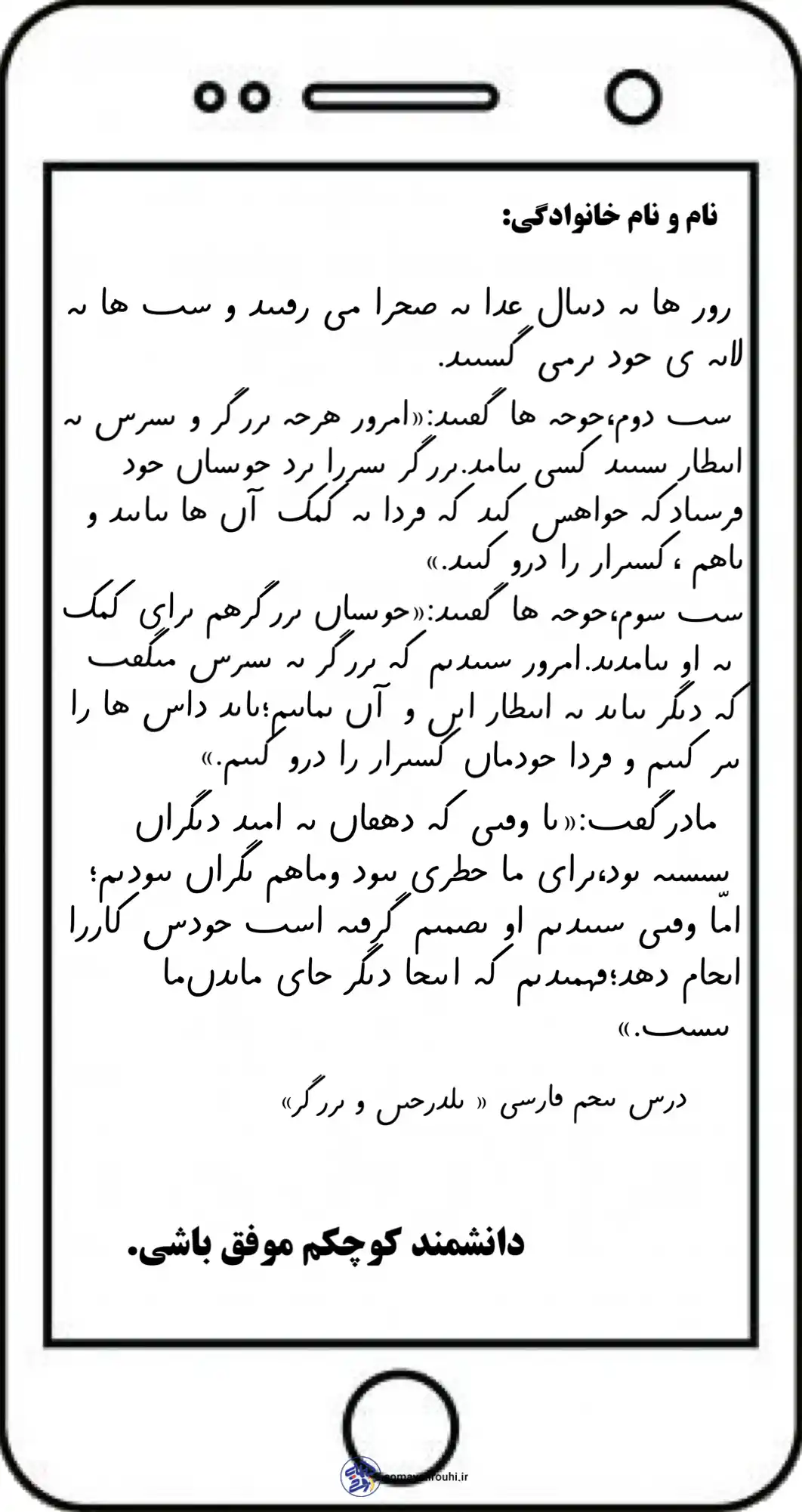 مشاهده بزرگ کاربرگ آزمونکاربرگ های پایه دومکاربرگ های فارسی پایه دوم آزمون فارسی درس ۱ تا ۷ کلاس دوم دبستان