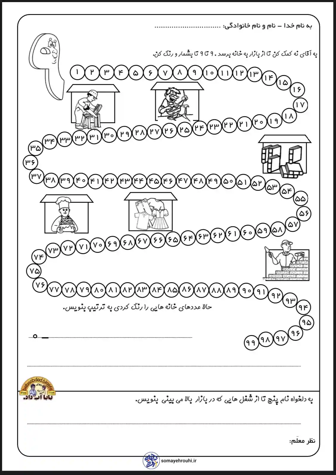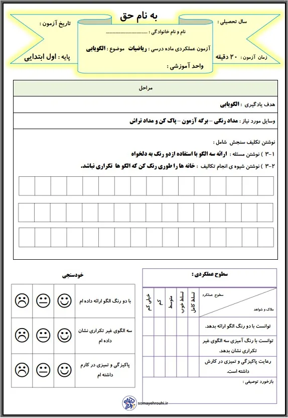 مشاهده بزرگ آموزش اعدادپایه اولکاربرگ آزمونکاربرگ های ریاضی پایه اول آزمون ریاضی الگو یابی اول دبستان قابل چاپ
