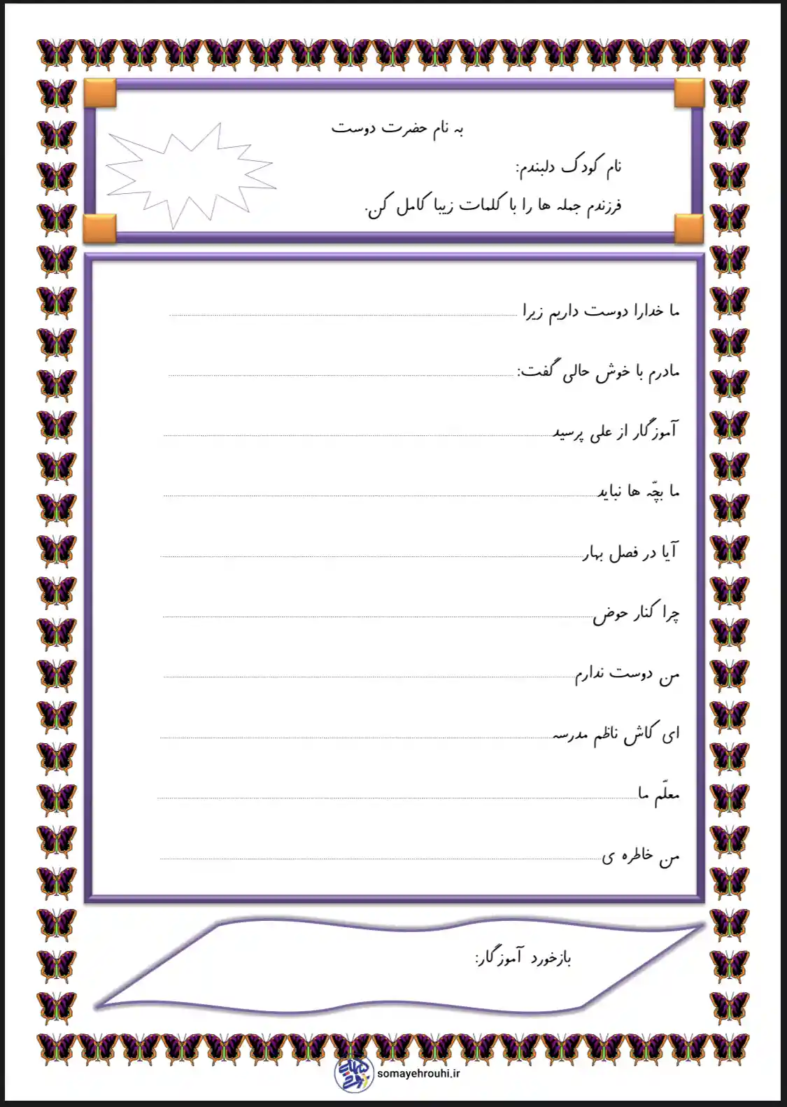 مشاهده بزرگ کاربرگ آزمونکاربرگ های پایه دومکاربرگ های فارسی پایه دوم دانلود رایگان آزمون فارسی دوم دبستان