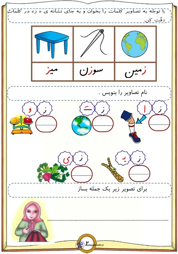 مشاهده بزرگ آموزش حروف الفباپایه اولکاربرگ های فارسی پایه اول کاربرگ نشانه ز برای کلاس اول + تمرین های متنوع