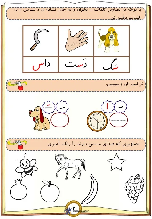 مشاهده بزرگ آموزش حروف الفباپایه اولکاربرگ های فارسی پایه اول کاربرگ نشانه س برای کلاس اول + تمرین های متنوع