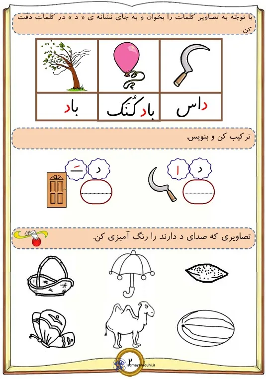 مشاهده بزرگ آموزش حروف الفباپایه اولکاربرگ های فارسی پایه اول کاربرگ نشانه د برای کلاس اول + تمرین های متنوع