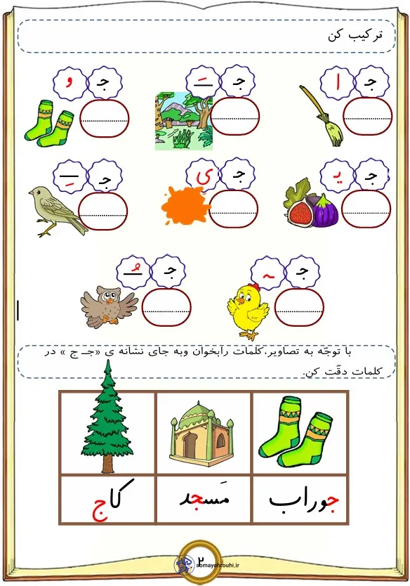 مشاهده بزرگ آموزش حروف الفباپایه اولکاربرگ های فارسی پایه اول کاربرگ نشانه ج برای کلاس اول + تمرین های متنوع