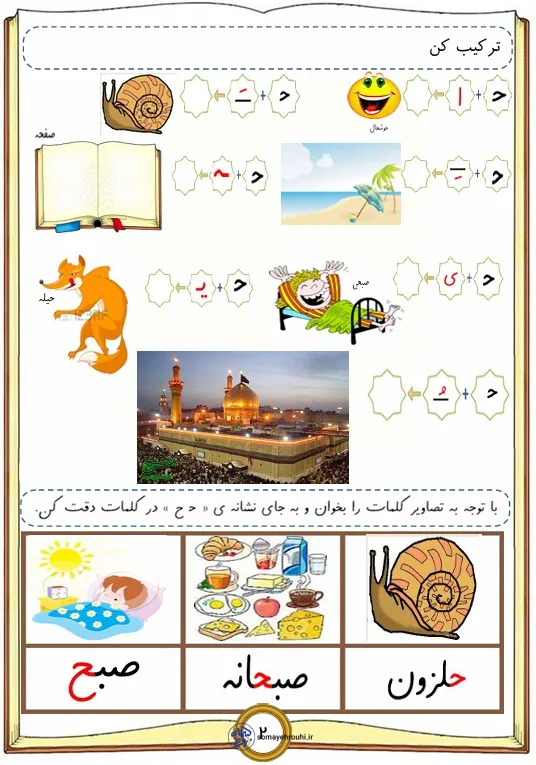 مشاهده بزرگ آموزش حروف الفباپایه اولکاربرگ های فارسی پایه اول کاربرگ نشانه ح برای کلاس اول + تمرین های متنوع