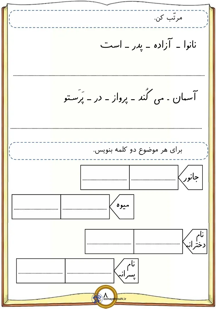 مشاهده بزرگ آموزش حروف الفباپایه اولکاربرگ های فارسی پایه اول کاربرگ نشانه ث برای کلاس اول + تمرین های متنوع