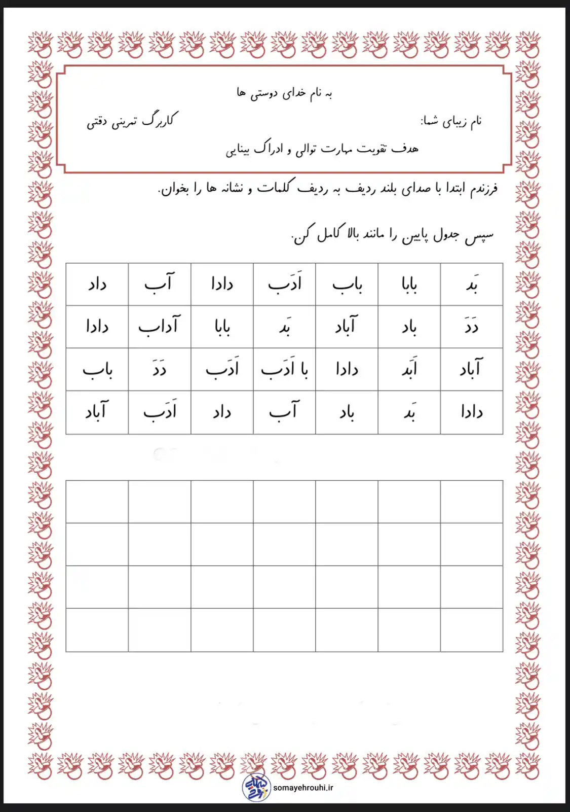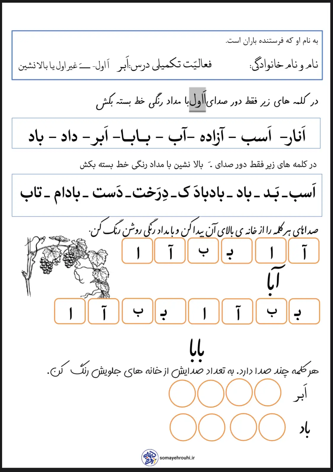 مشاهده بزرگ آموزش حروف الفباپایه اولکاربرگ های فارسی پایه اول کاربرگ فارسی اَ اول َ غیر اول پایه اول دبستان