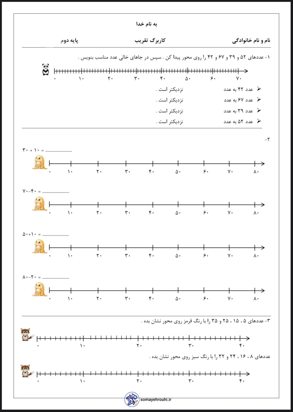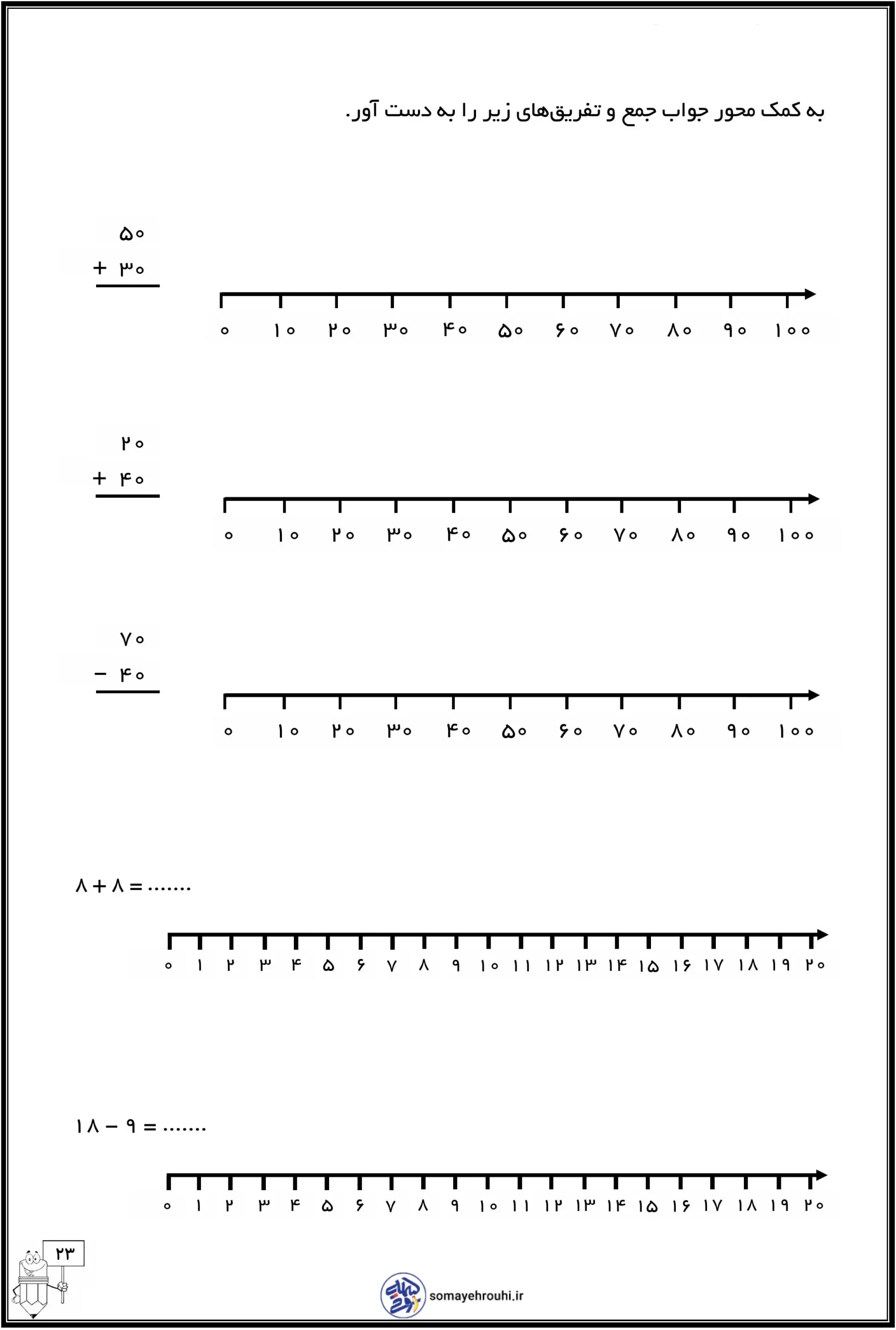 مشاهده بزرگ کاربرگ های پایه دومکاربرگ های ریاضی پایه دوم کاربرگ جمع و تفریق با محور کلاس دوم + pdf رایگان