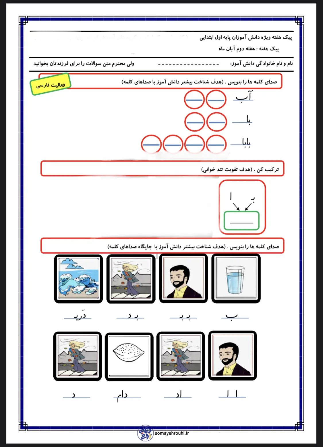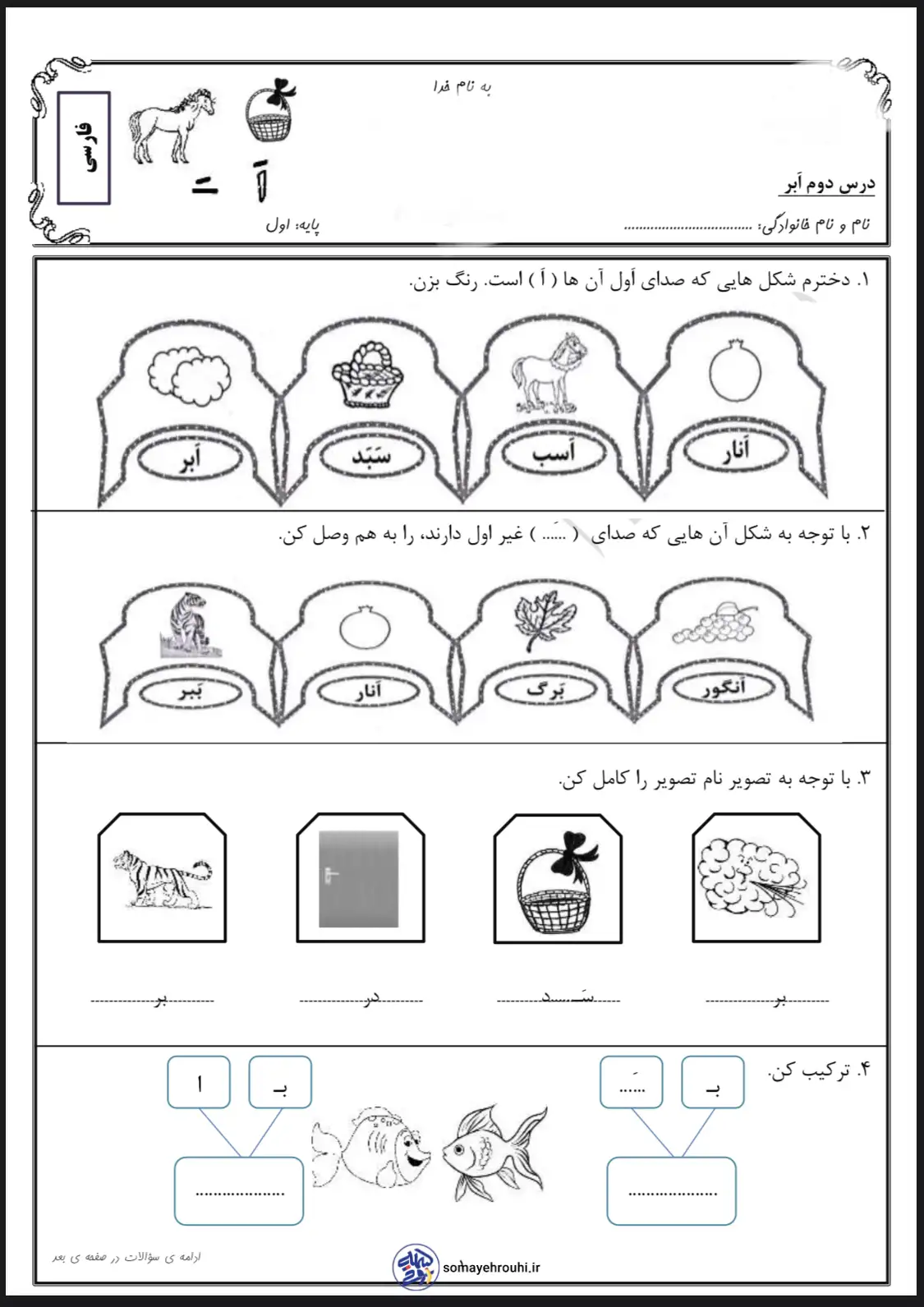 مشاهده بزرگ آموزش حروف الفباپایه اولکاربرگ های فارسی پایه اول دانلود رایگان کاربرگ فارسی نشانه اَ اول ابتدایی