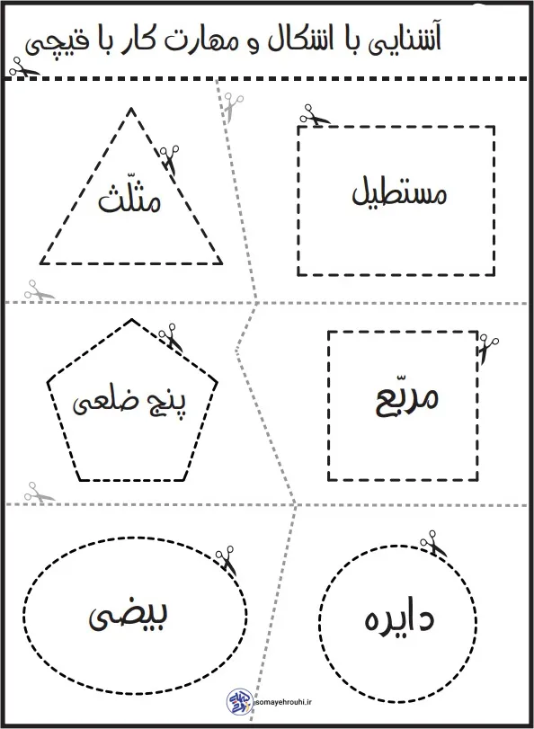 مشاهده بزرگ پایه اولپیش دبستانکاربرگ دست ورزیکاربرگ های ریاضی پایه اول کاربرگ اشکال هندسی و مهارت کار با قیچی