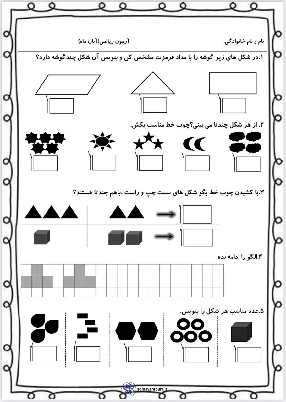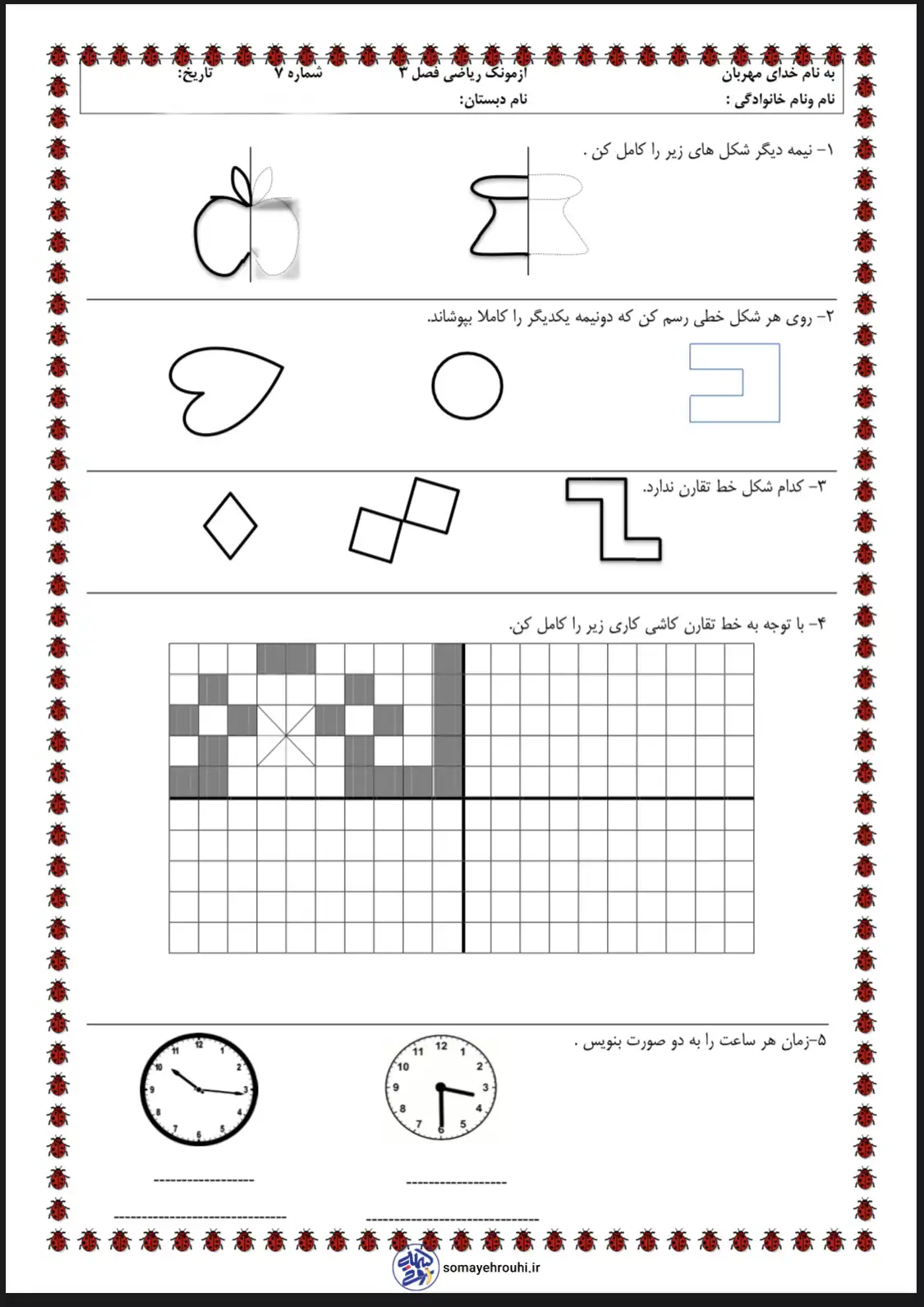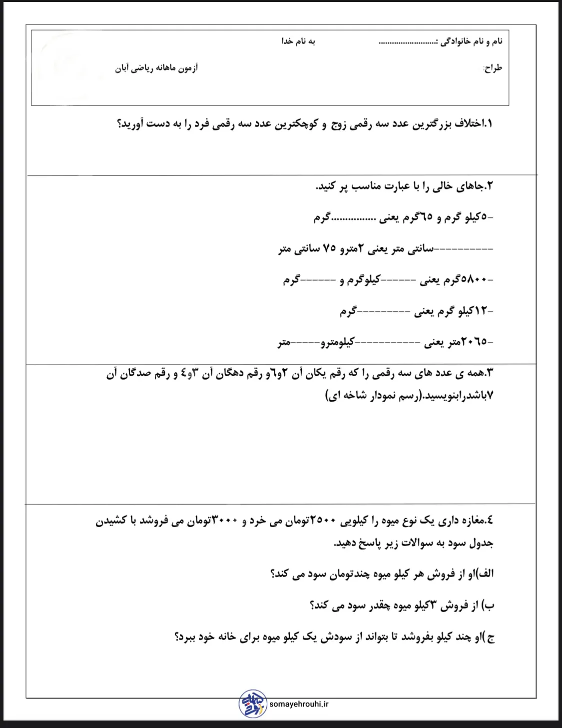 مشاهده بزرگ کاربرگ آزمونکاربرگ های پایه دومکاربرگ های ریاضی پایه دوم آزمون ریاضی فصل ۳ پایه دوم دبستان