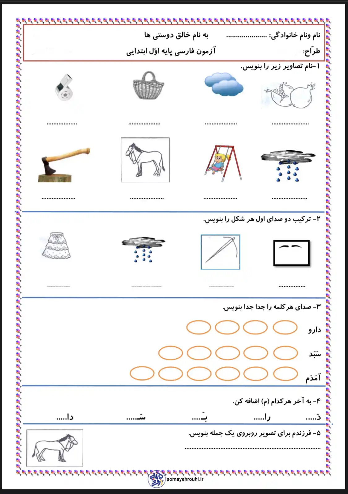 مشاهده بزرگ آموزش حروف الفباپایه اولکاربرگ آزمونکاربرگ های فارسی پایه اول آزمون کلمه سازی و جمله سازی نشانه ر اول ابتدایی