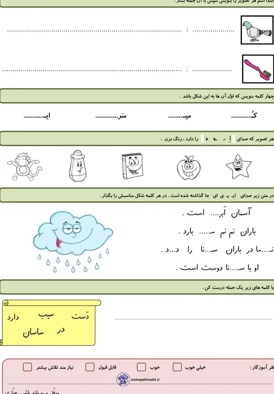 مشاهده بزرگ پایه اولکاربرگ آزمونکاربرگ های فارسی پایه اول کاربرگ آزمون نوبت اول فارسی پایه اول دبستان