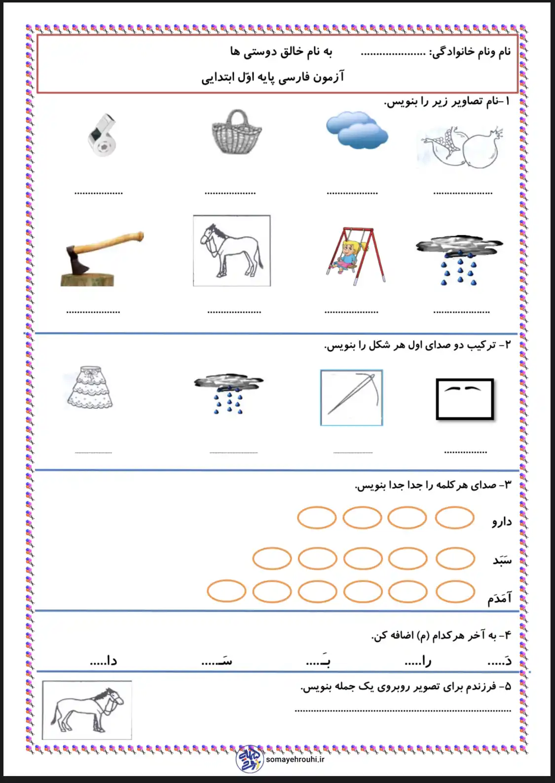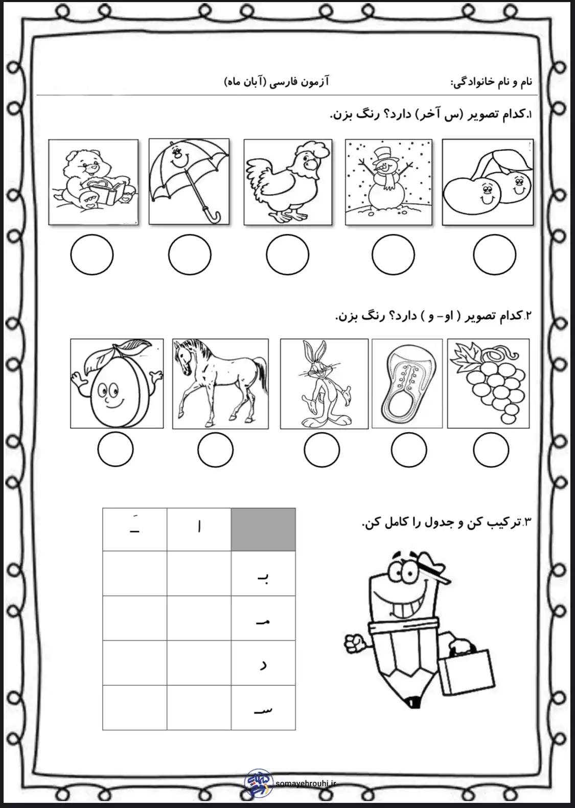 مشاهده بزرگ پایه اولکاربرگ آزمونکاربرگ های فارسی پایه اول آزمون رایگان فارسی آبان ماه پایه اول دبستان
