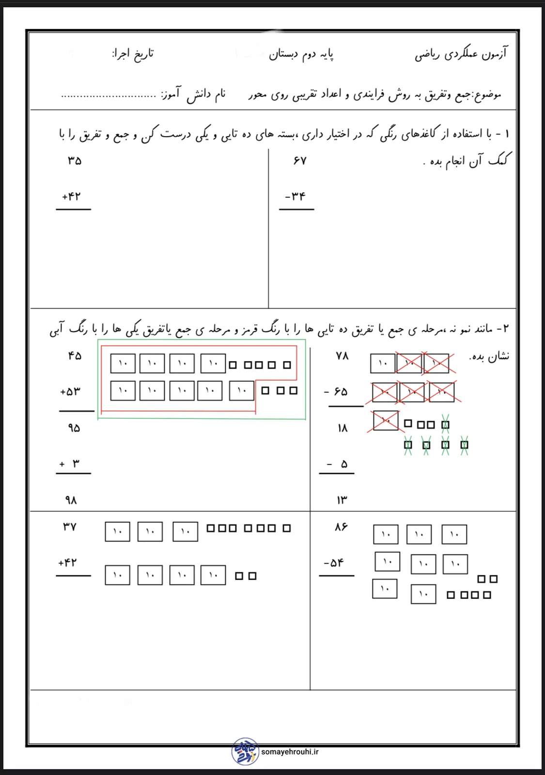 مشاهده بزرگ کاربرگ آزمونکاربرگ های پایه دومکاربرگ های ریاضی پایه دوم کاربرگ جمع و تفریق ده تایی ریاضی دوم دبستان + پاسخ