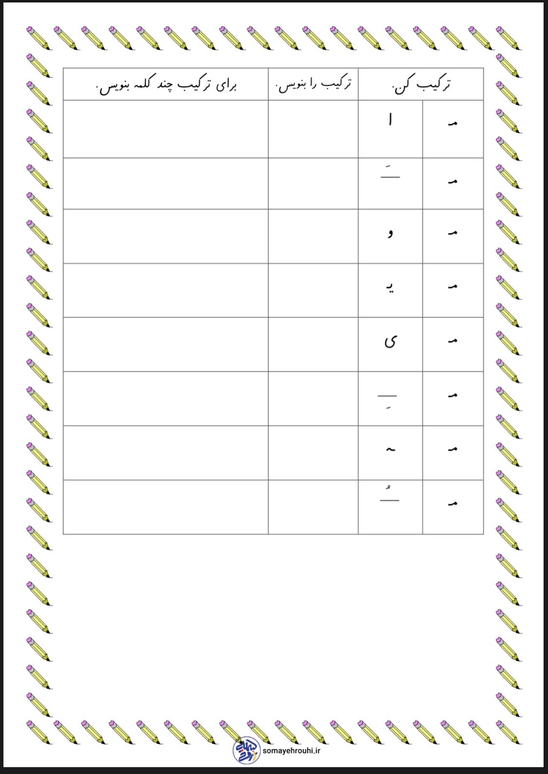 کاربرگ ترکیب کردن حروف فارسی اول دبستان