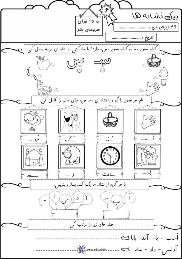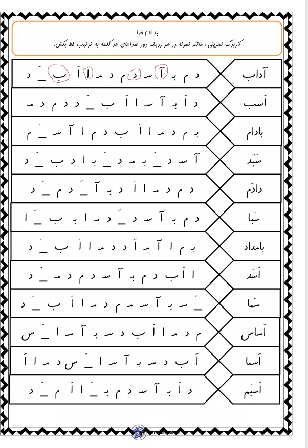 کاربرگ نشانه ر فارسی کلاس اول دبستان