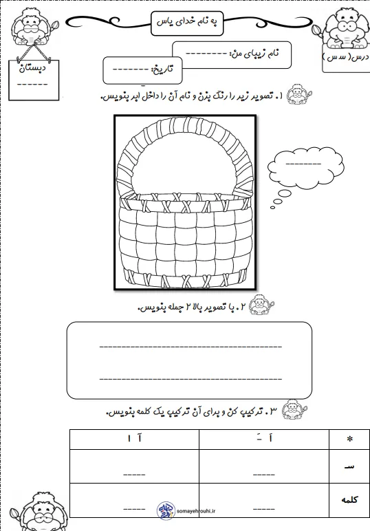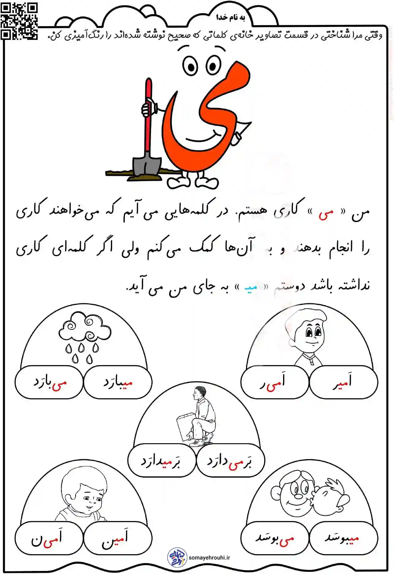 کاربرگ فارسی می کاری کلاس اول دبستان