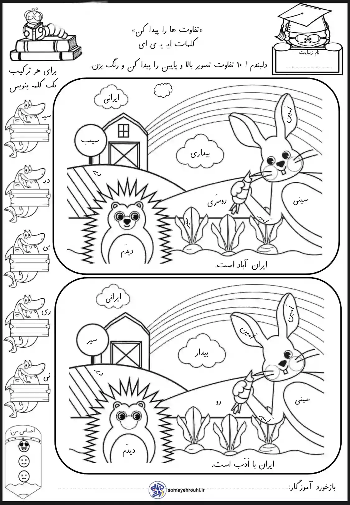 کاربرگ رایگان نشانه (ای ی) اول دبستان