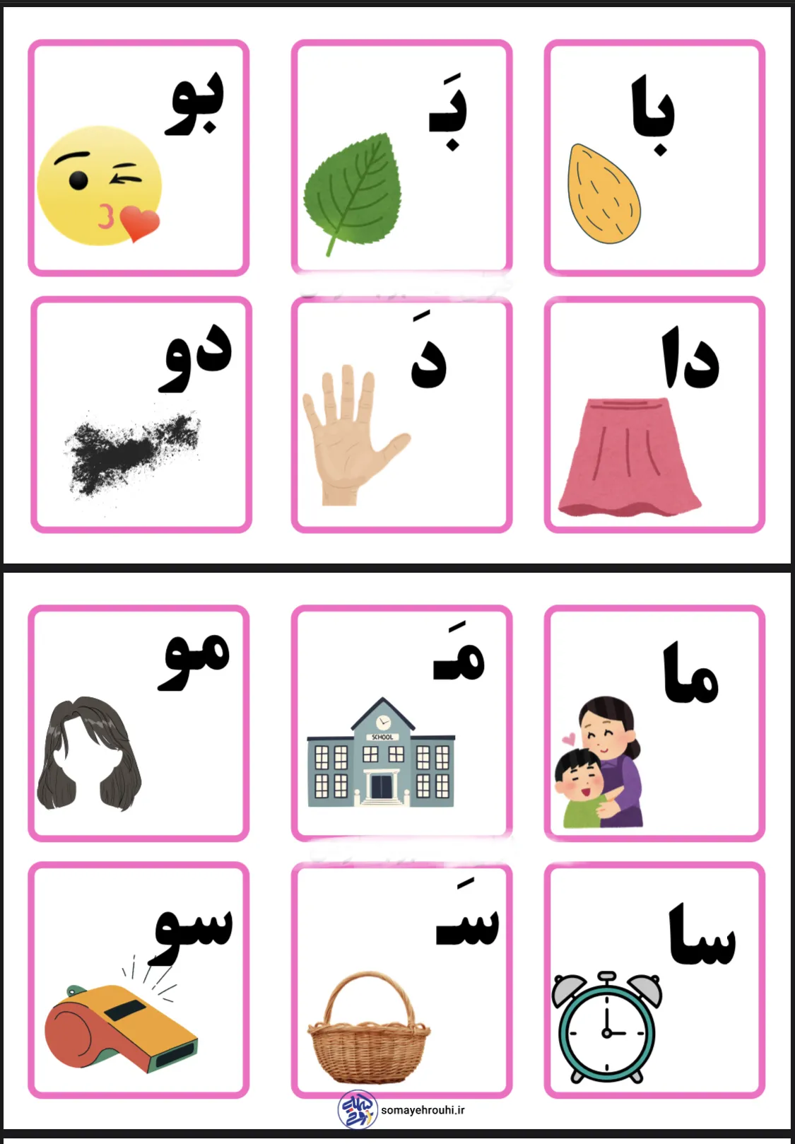 فلش‌کارت حروف الفبا و ترکیب نشانه‌ها