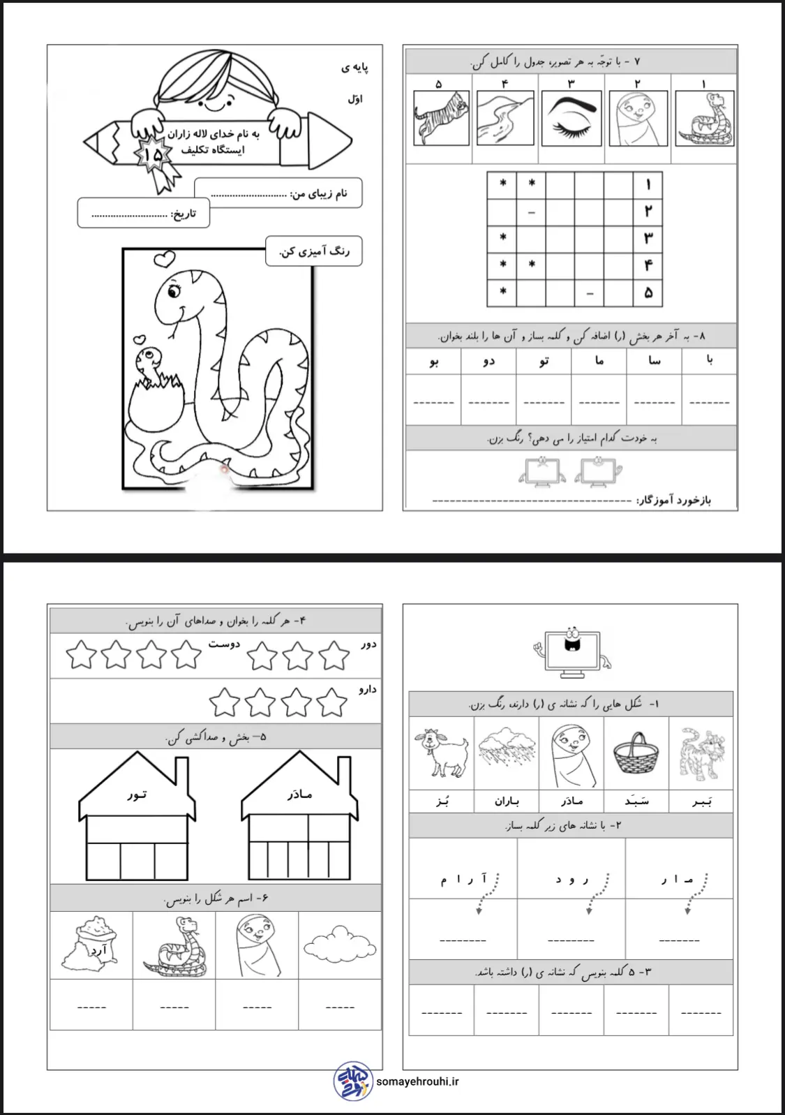 آیا این کاربرگها با کتاب فارسی اول دبستان هماهنگ هستند؟