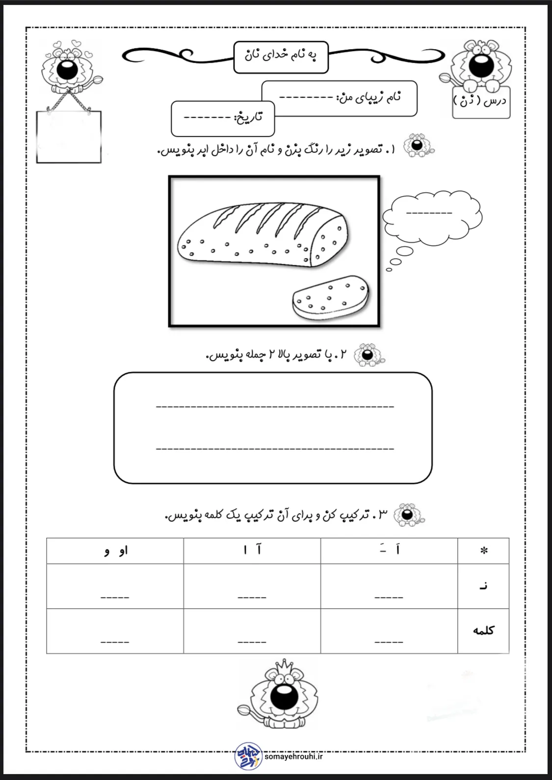 کاربرگ نشانه ن فارسی کلاس اول دبستان