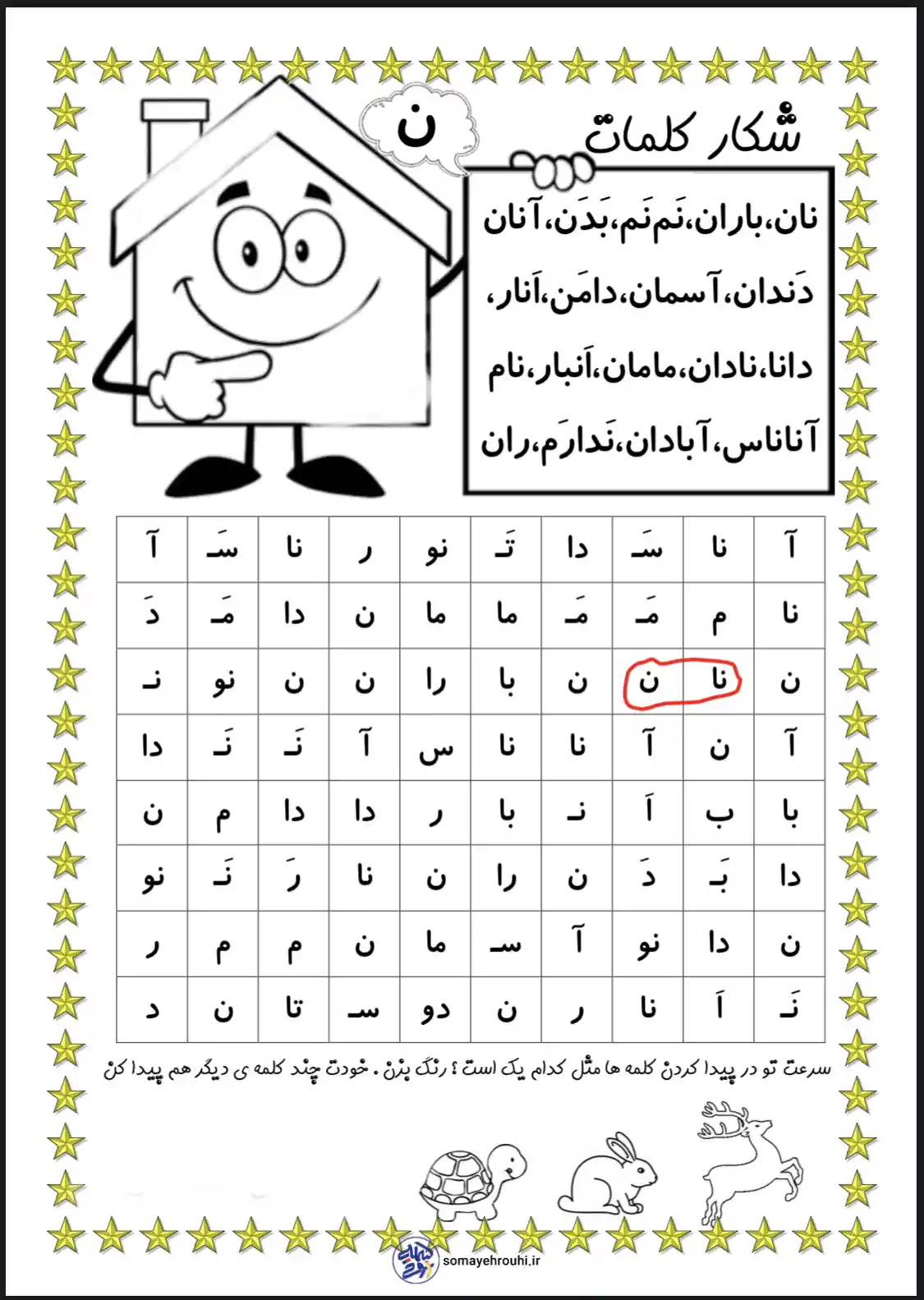 تکلیف رایگان نشانه ن فارسی اول دبستان