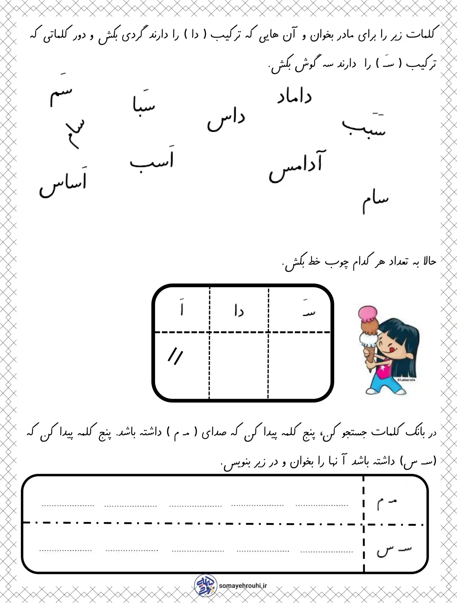 کاربرگ روان خوانی نشانه ر فارسی اول دبستان