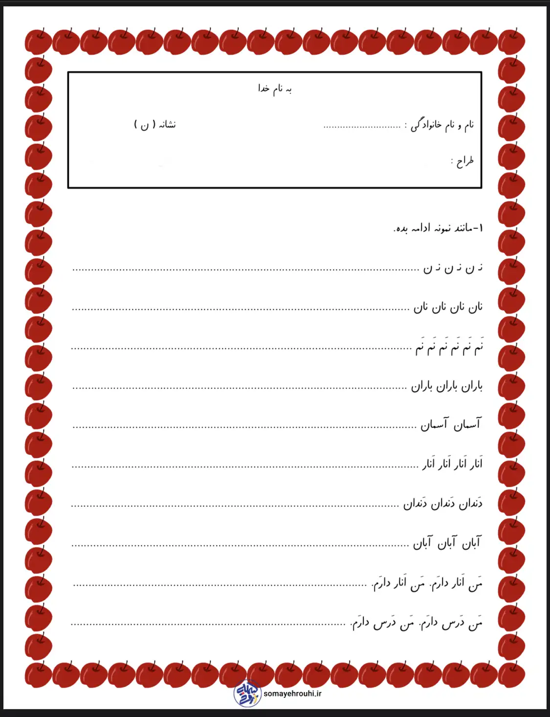 کاربرگ فارسی نشانه ن کلاس اول دبستان