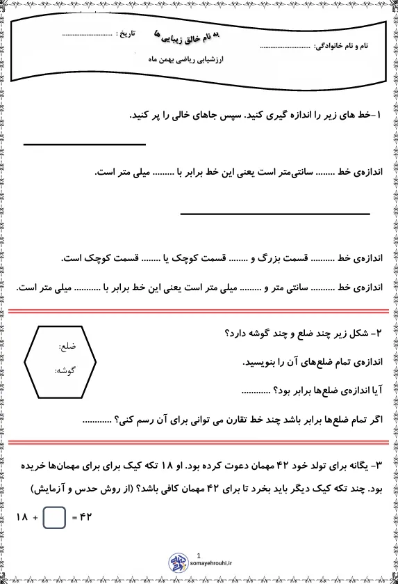 مشاهده بزرگ کاربرگ های پایه دومکاربرگ های ریاضی پایه دوم کاربرگ های عملکردی درس اندازه گیری ریاضی دوم