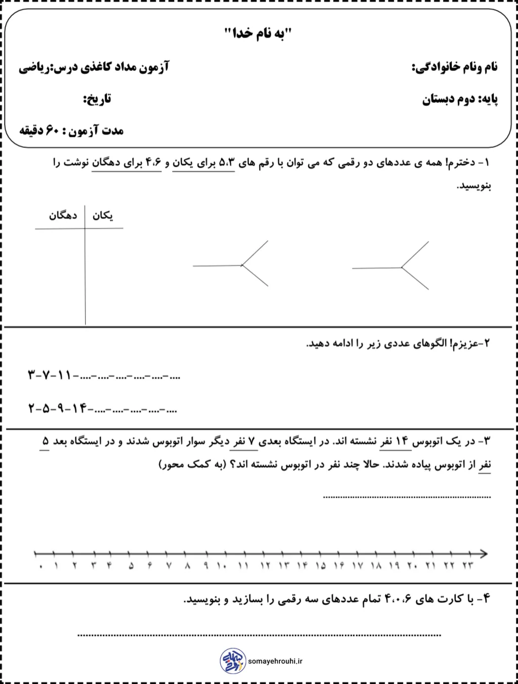 مشاهده بزرگ کاربرگ آزمونکاربرگ های پایه دومکاربرگ های ریاضی پایه دوم آزمون دی ماه ریاضی کلاس دوم دبستان