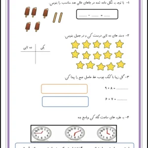 مشاهده بزرگ کاربرگ آزمونکاربرگ های پایه دومکاربرگ های ریاضی پایه دوم آزمون ریاضی فصل یک پایه دوم دبستان