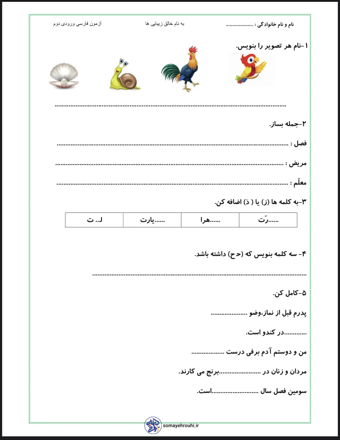 مشاهده بزرگ کاربرگ آزمون کاربرگ های پایه دوم کاربرگ های فارسی پایه دوم دانلود ارزشیابی فارسی ورودی دوم ابتدایی