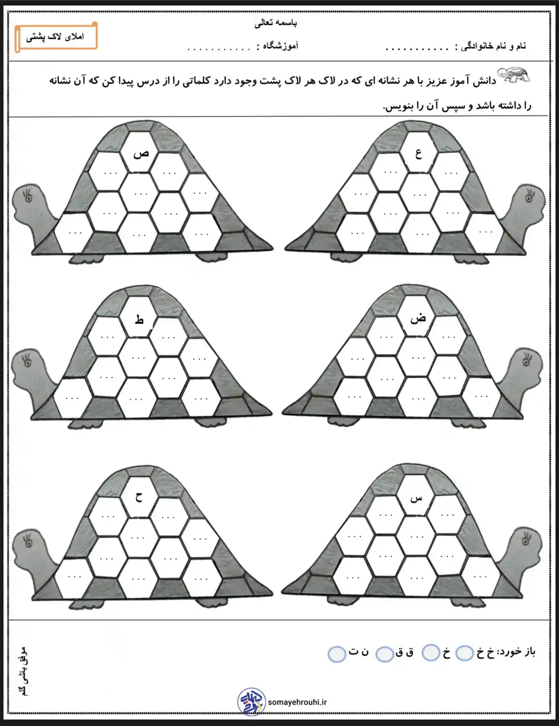 مشاهده بزرگ کاربرگ آزمون کاربرگ های پایه دوم کاربرگ های فارسی پایه دوم دانلود کاربرگ املا لاک پشتی | فارسی دوم دبستان