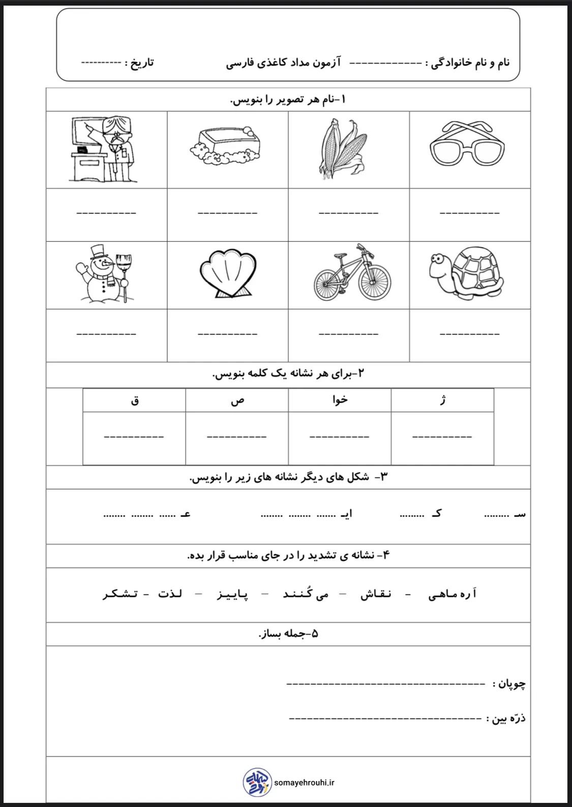مشاهده بزرگ کاربرگ آزمون کاربرگ های پایه دوم کاربرگ های فارسی پایه دوم آزمون ورودی بنویسیم فارسی دوم دبستان