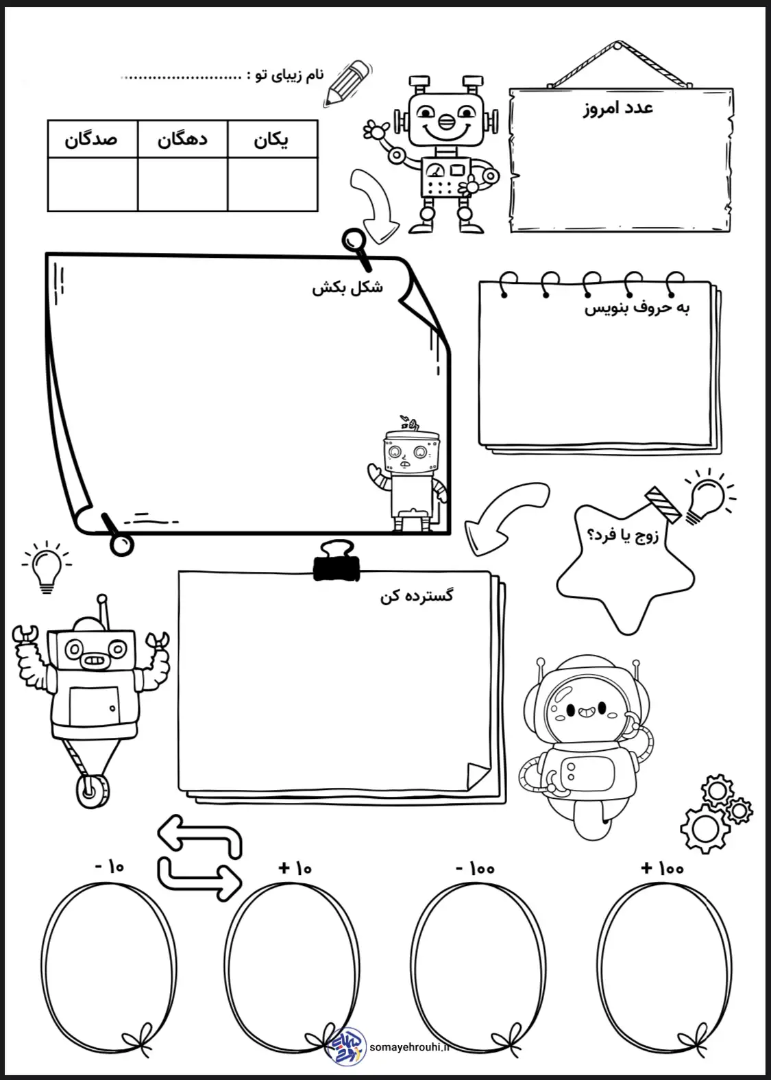 کاربرگ عدد نویسی ریاضی پایه دوم دبستان