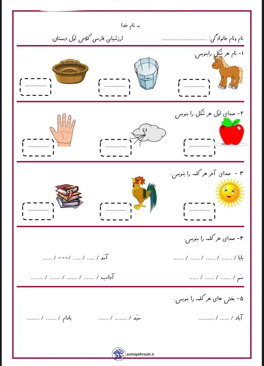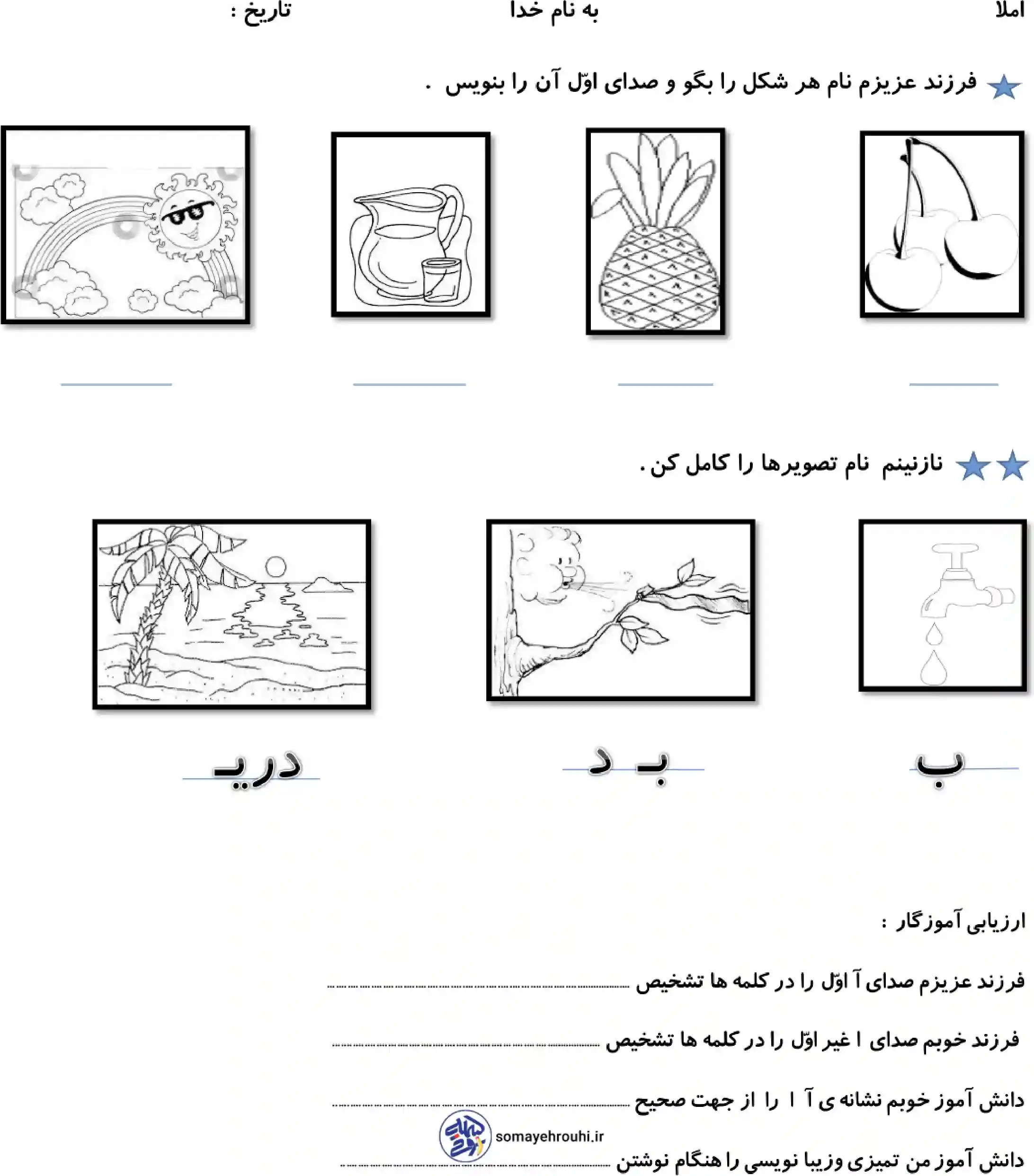 مشاهده بزرگ آموزش حروف الفباپایه اولفارسیکاربرگ های فارسی پایه اول دانلود کاربرگ املای تصویری نشانه و اول ابتدایی