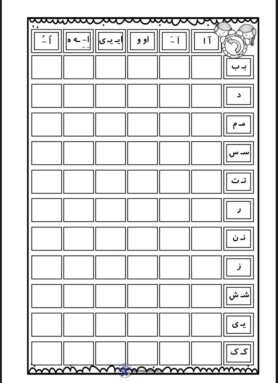 مشاهده بزرگ آموزش حروف الفباپایه اولفارسیکاربرگ های فارسی پایه اول کاربرگ جدول دوستی تا نشانه ک اول دبستان
