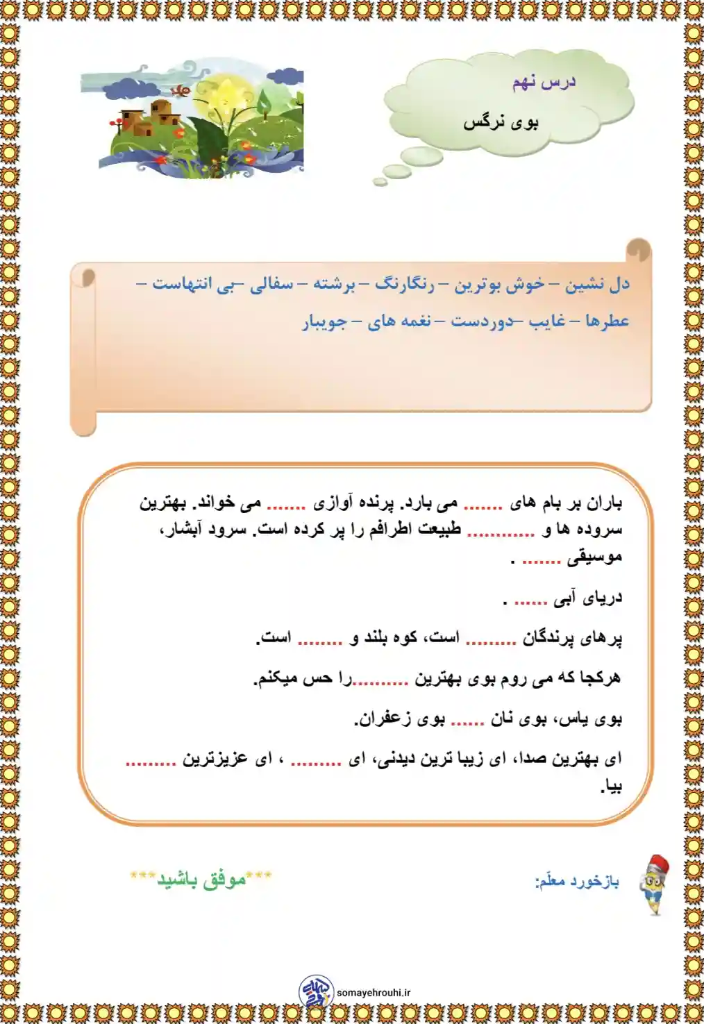 املا آموزشی فارسی درس نهم پایه سوم دبستان