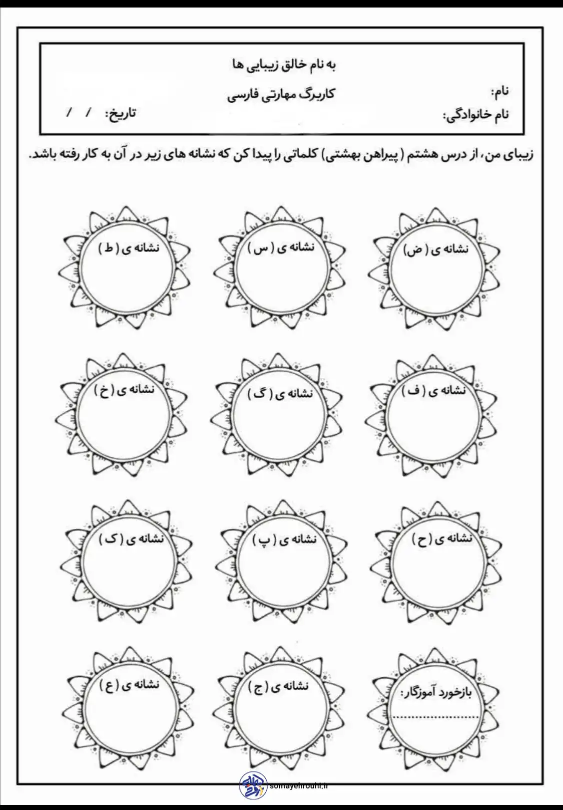 کاربرگ فارسی درس هشتم پایه سوم دبستان